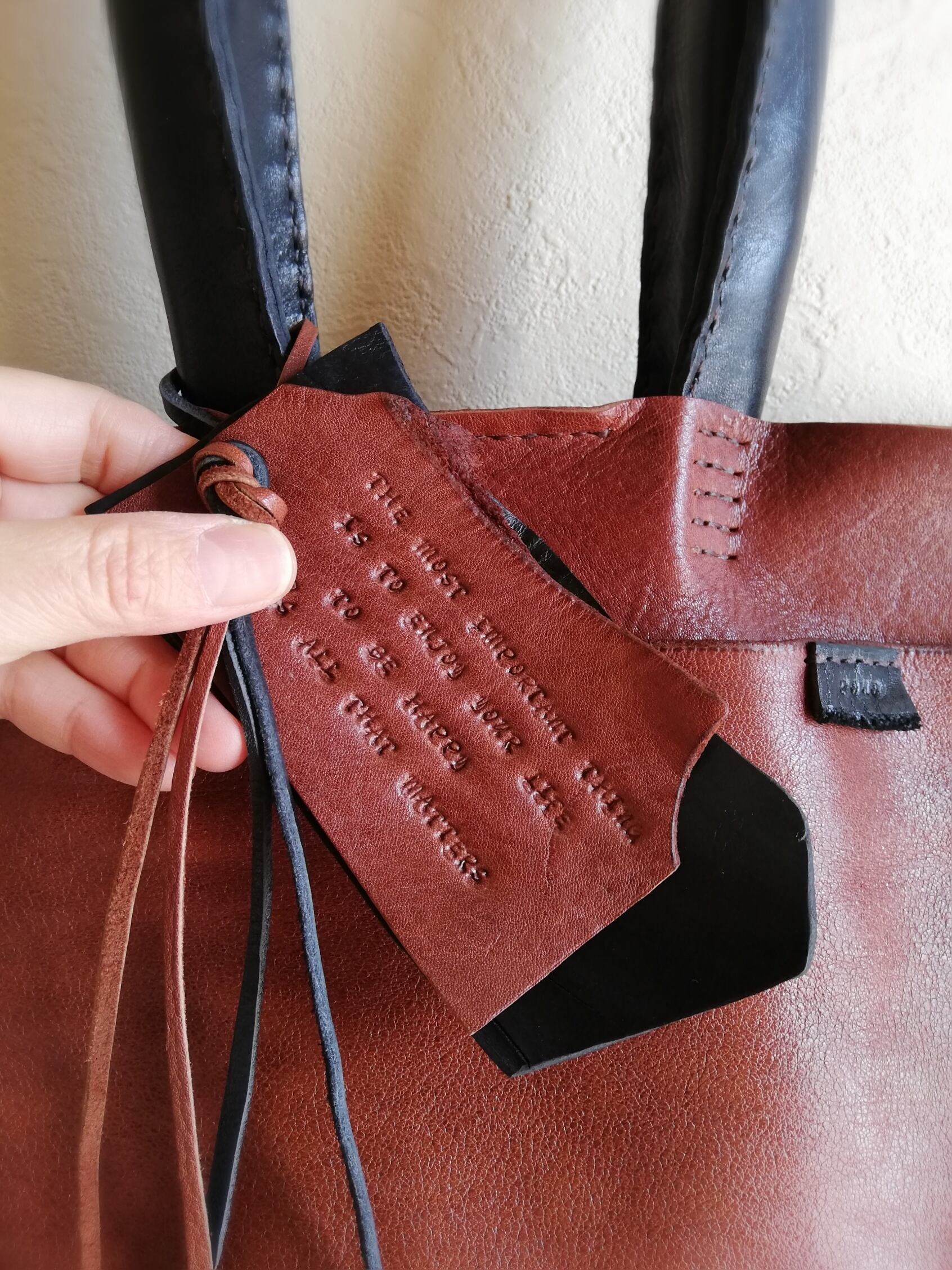 革タグチャームには、英国の女優 オードリー・ヘップバーンの名言