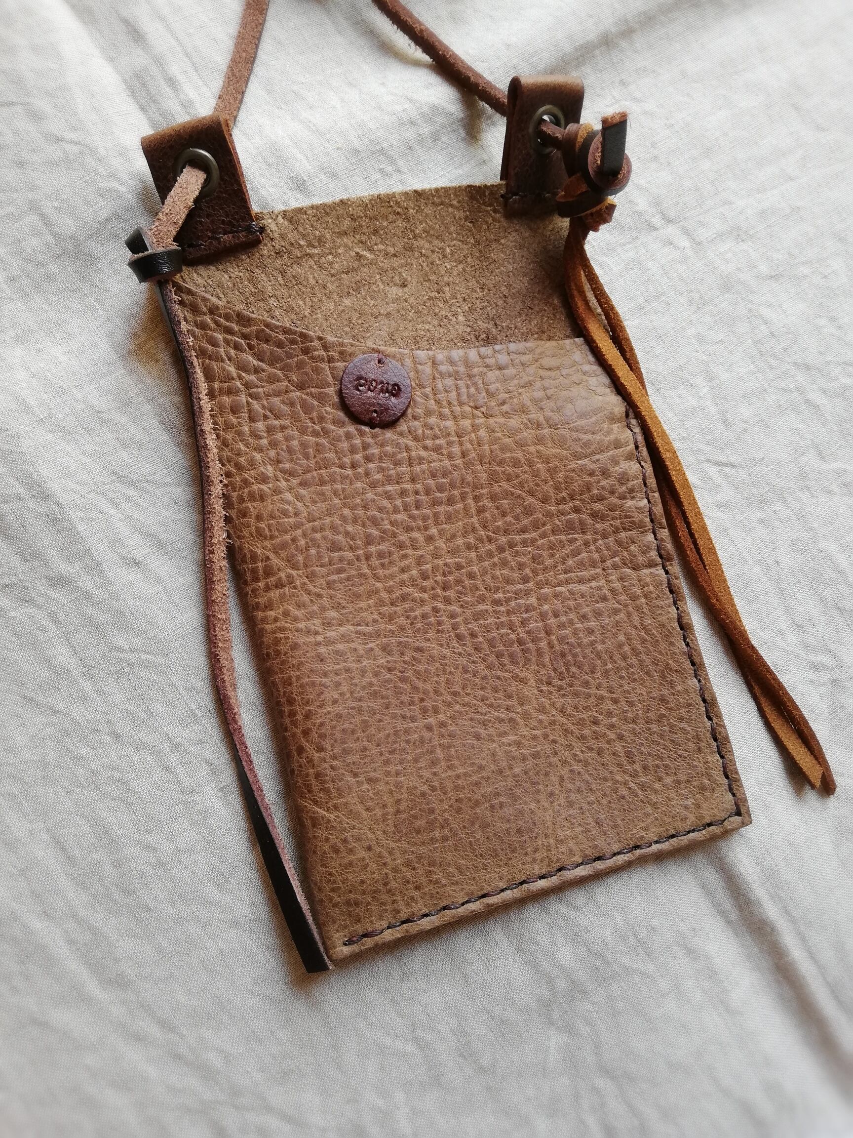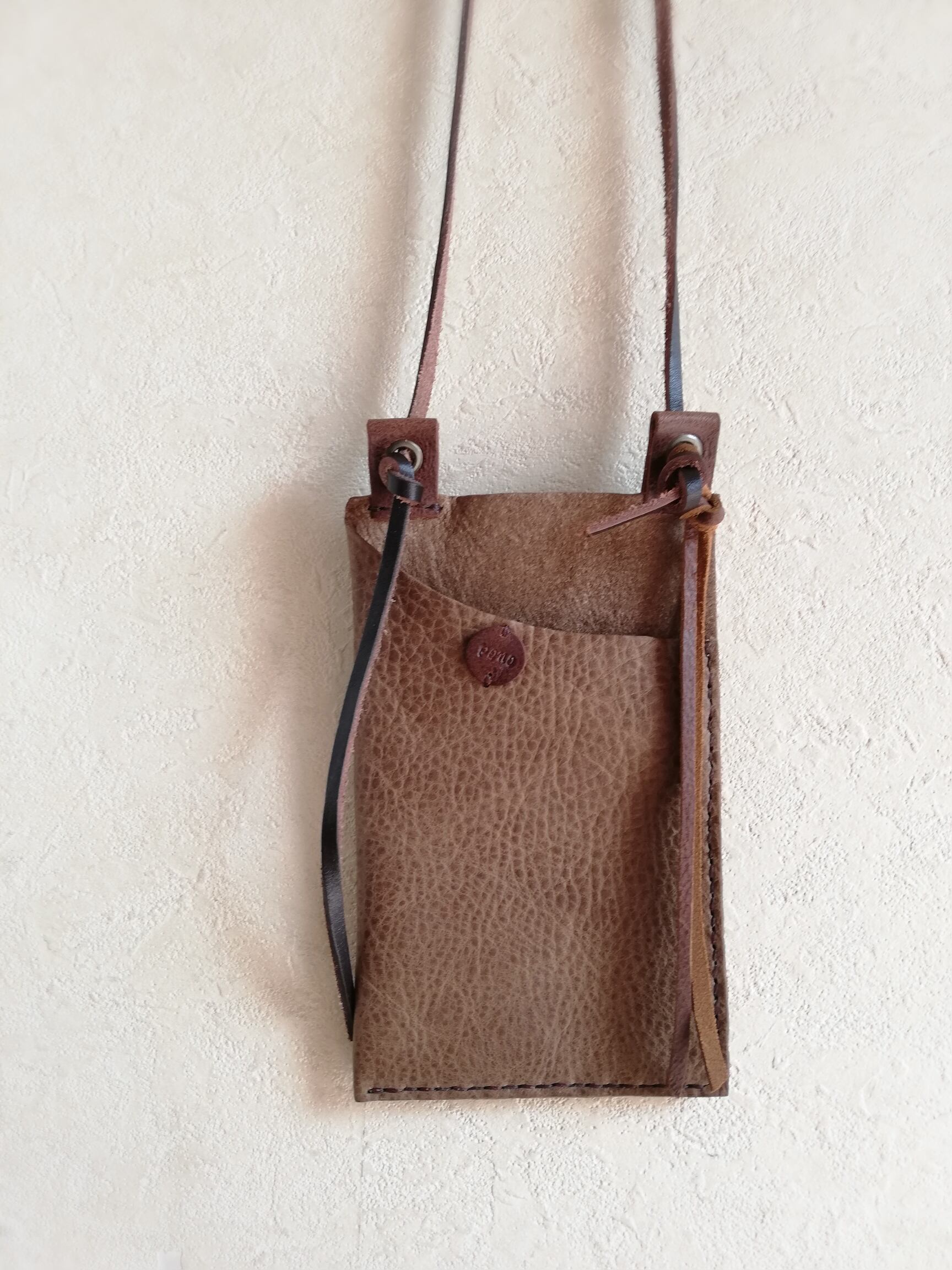 スマホショルダー スマホポシェット メガネケース グレーブラウン オイルシュリンクレザー