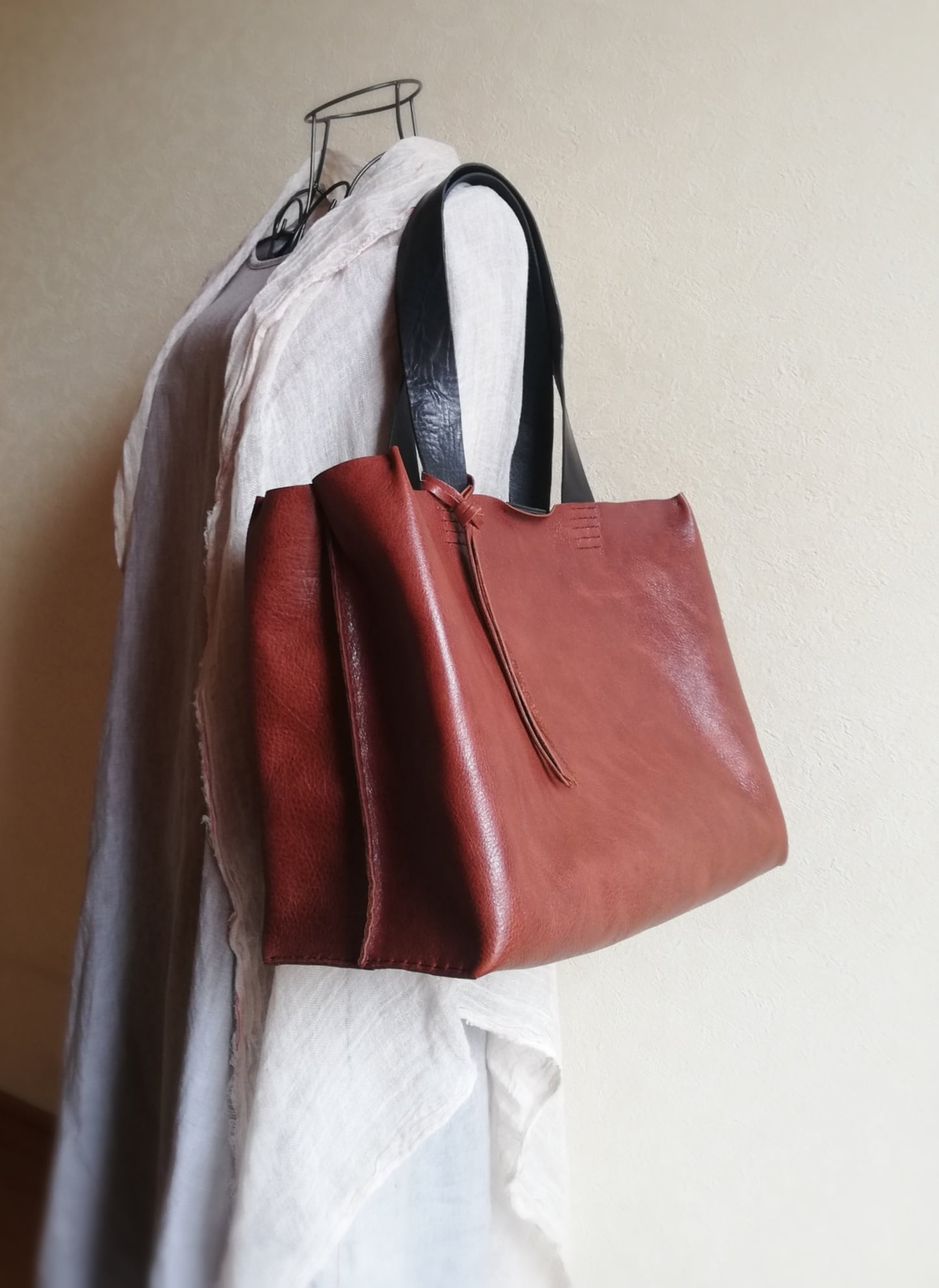 とても柔らかく軽い革で、お荷物を入れてもずっしりときません
