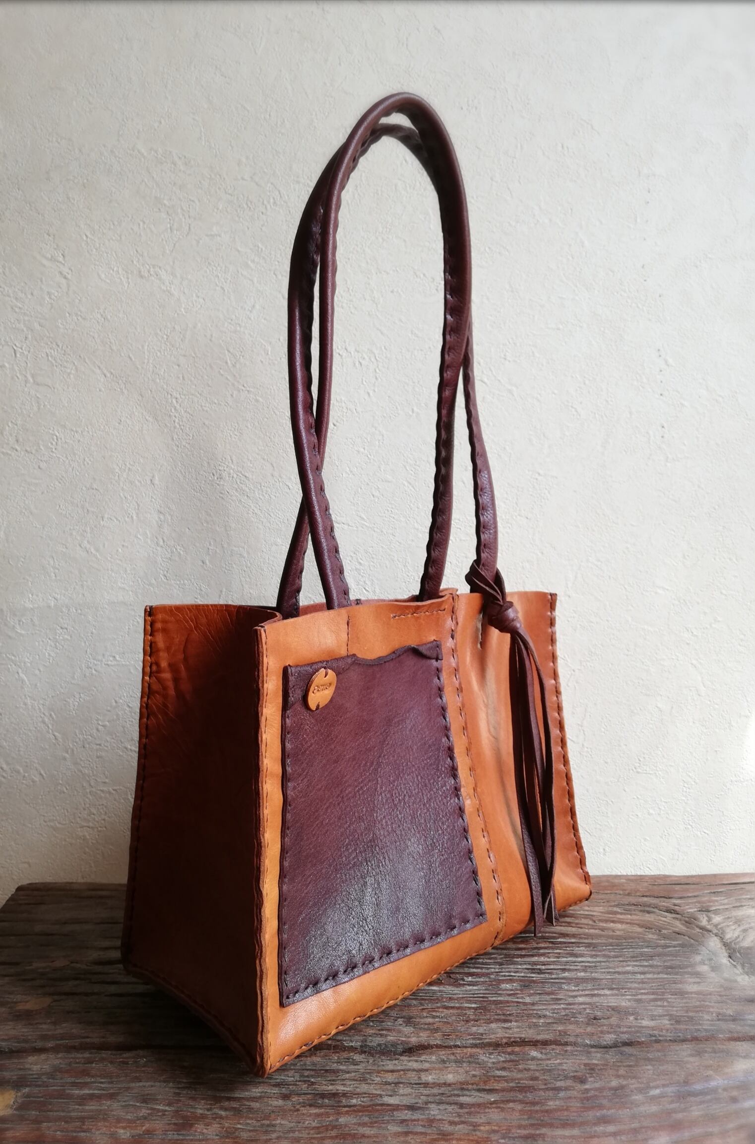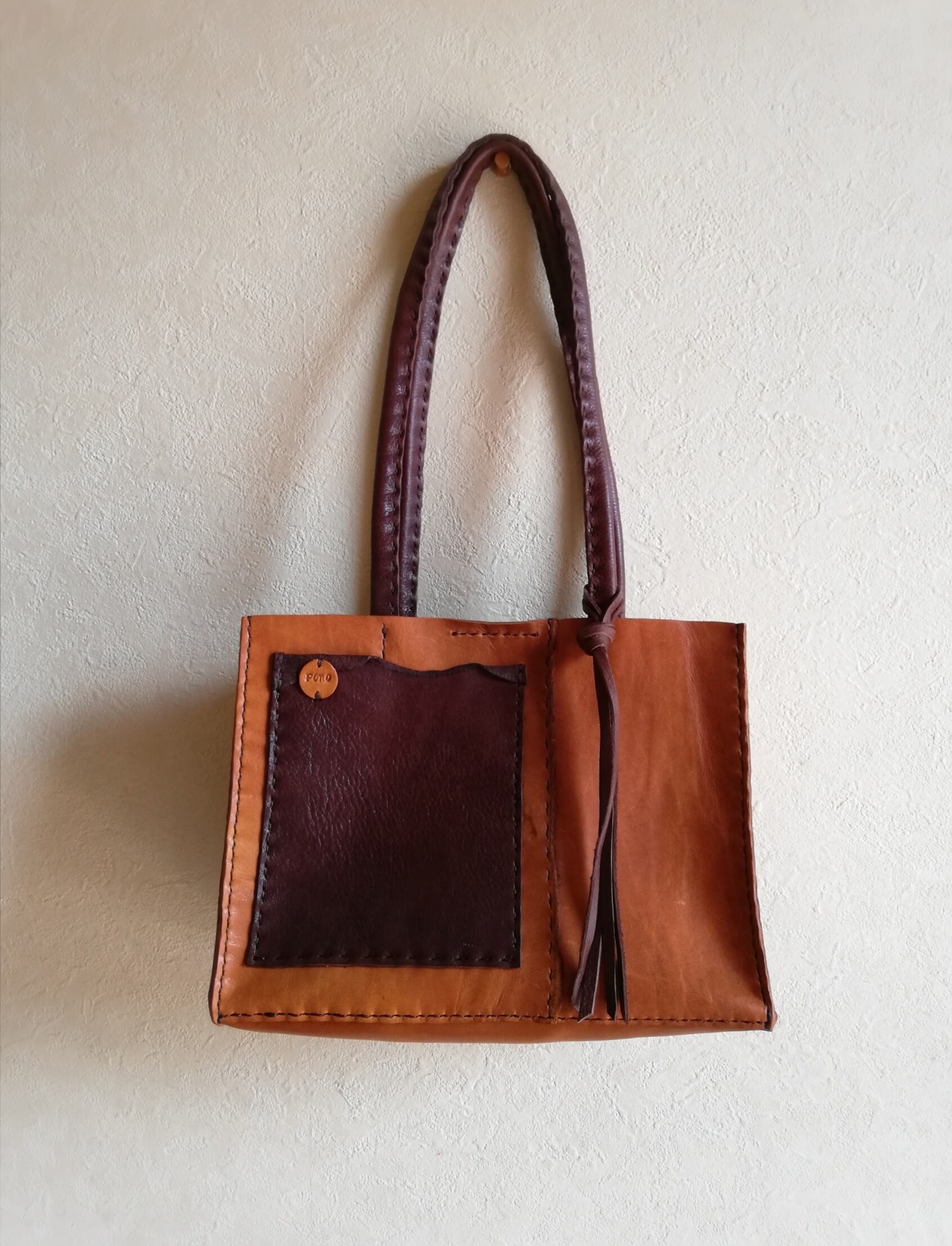 大人の虫かごトート オレンジブラウン✗ダークブラウン オイルワックスレザー