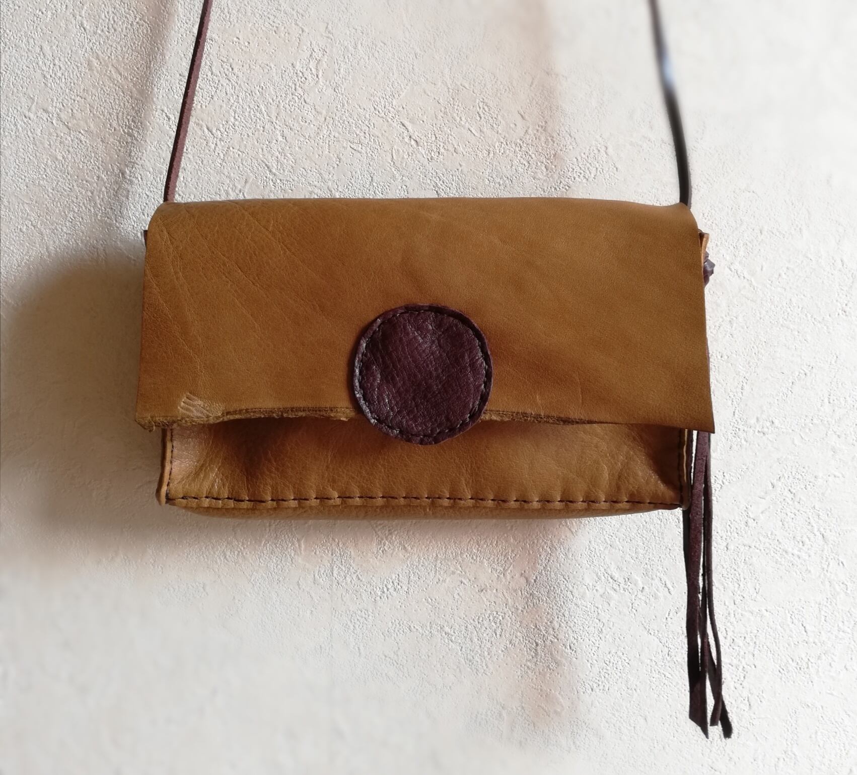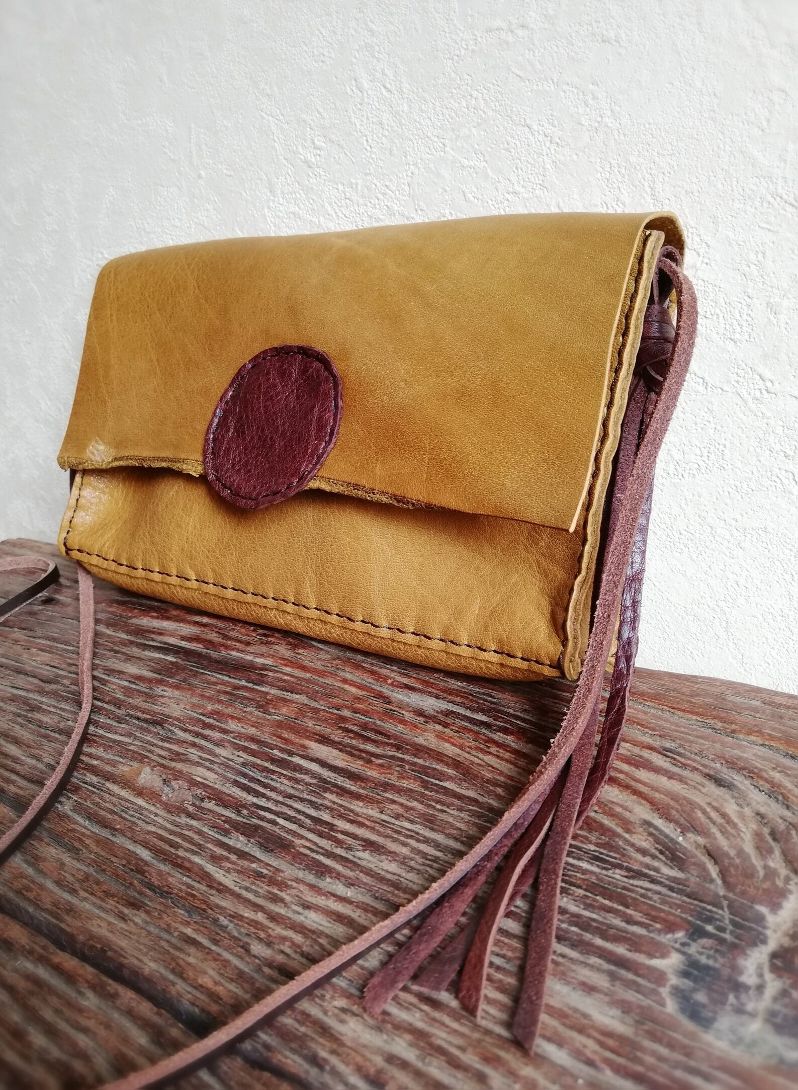 moonショルダー マスタードイエロー✗ダークブラウン オイルシュリンクレザー