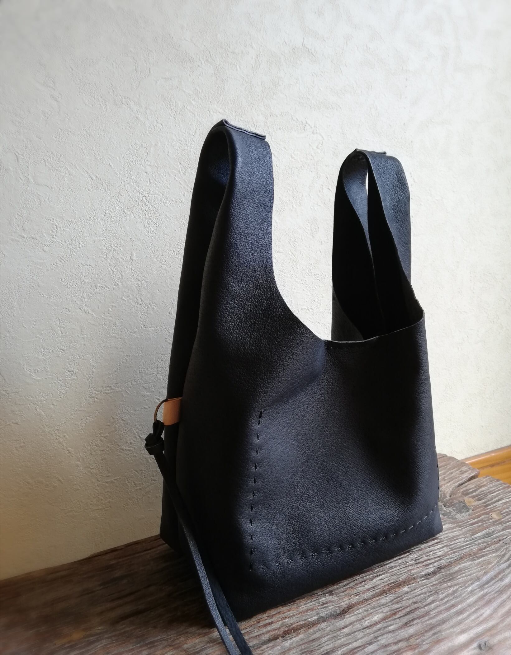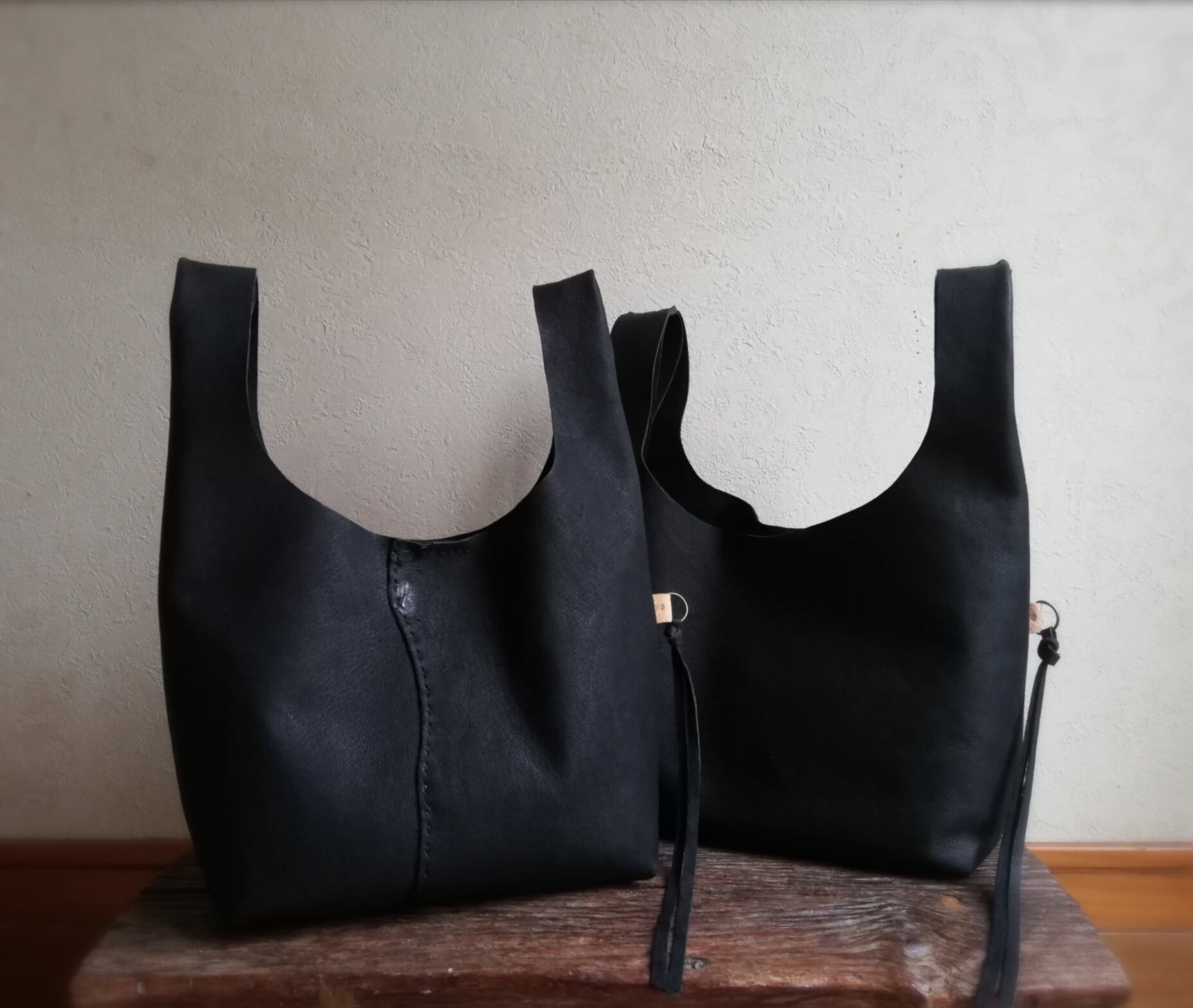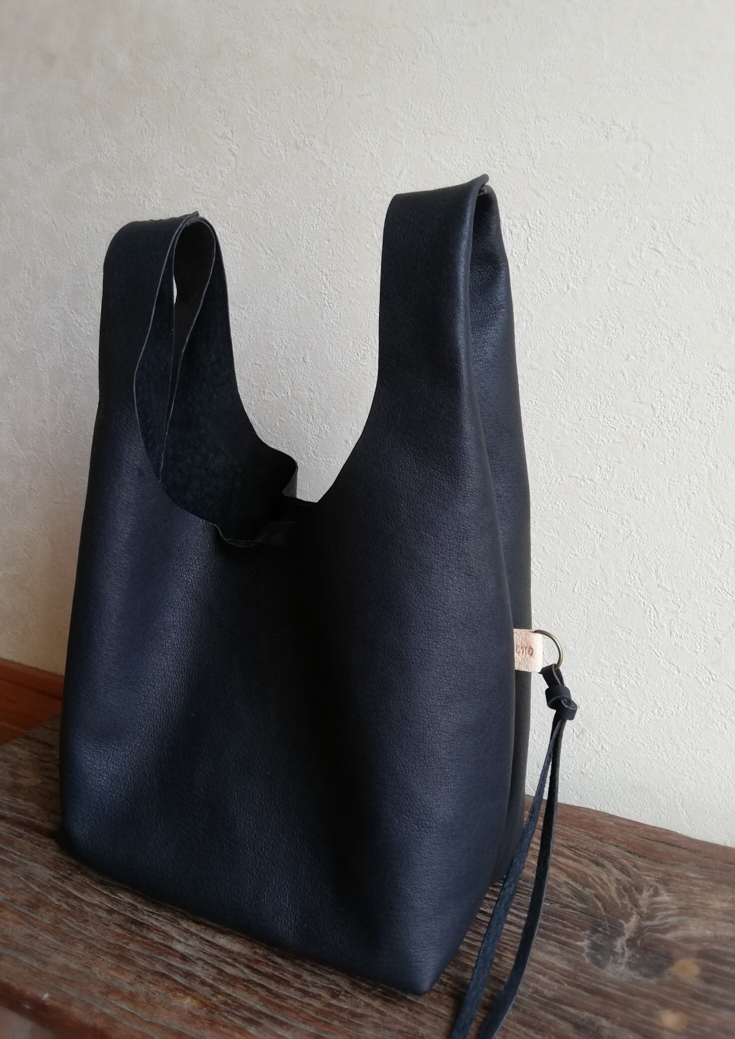 my Bag -mini- 黒色✗生成り ピッグスキンレザー