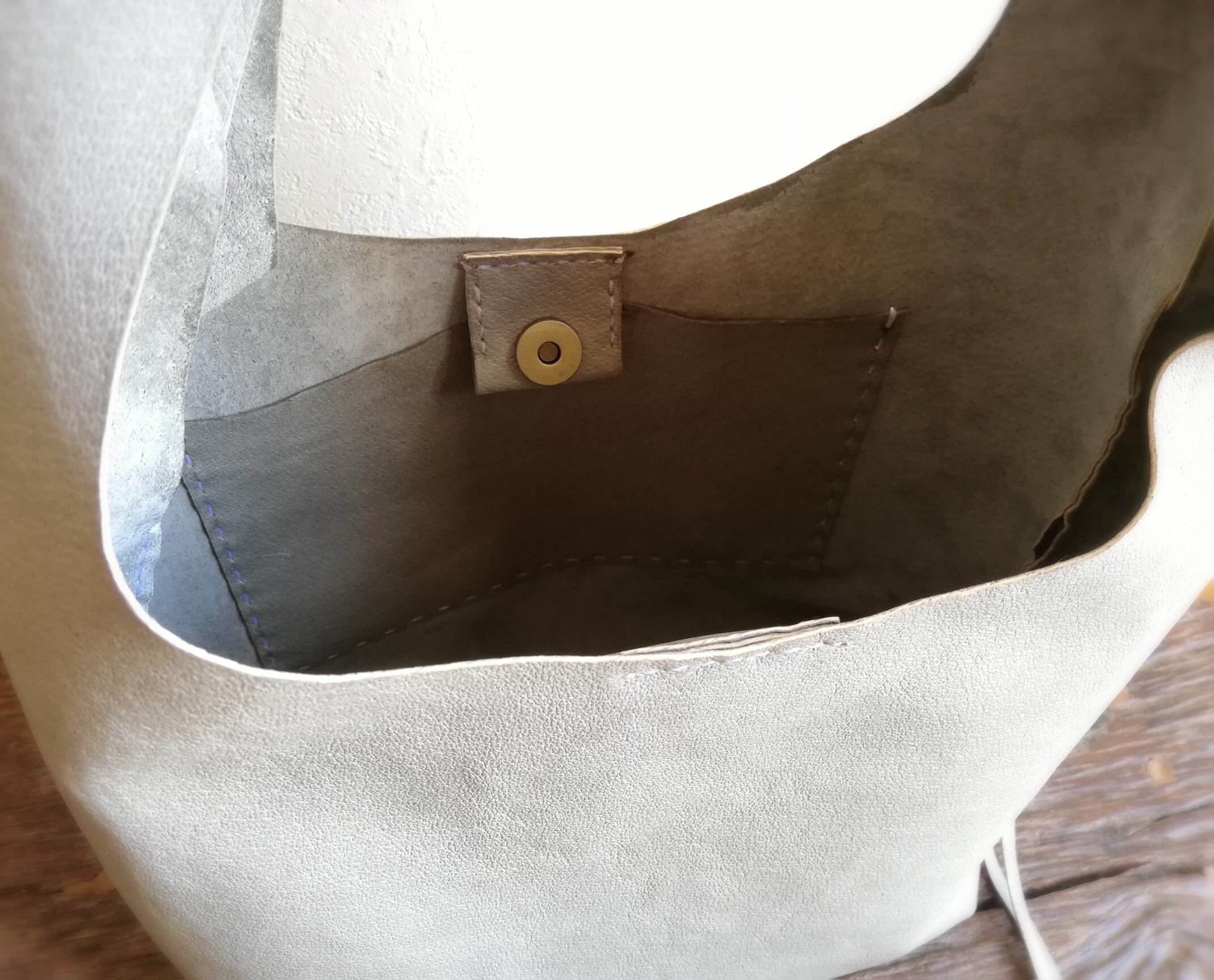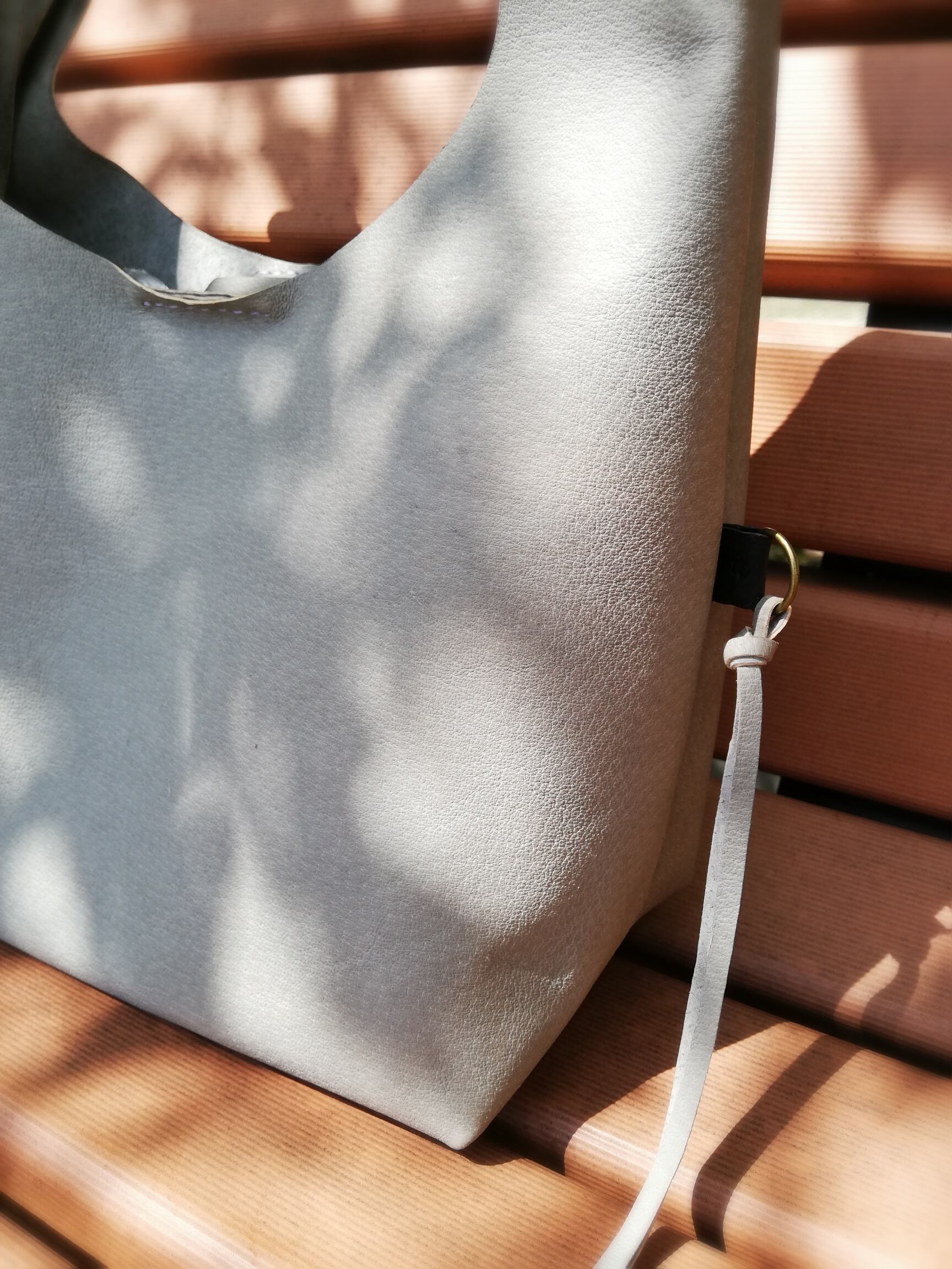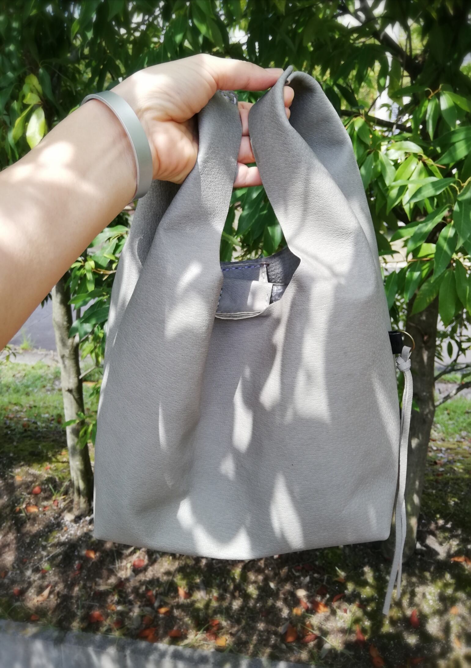 my Bag -mini- パールグレイ✗黒色 ピッグスキンレザー