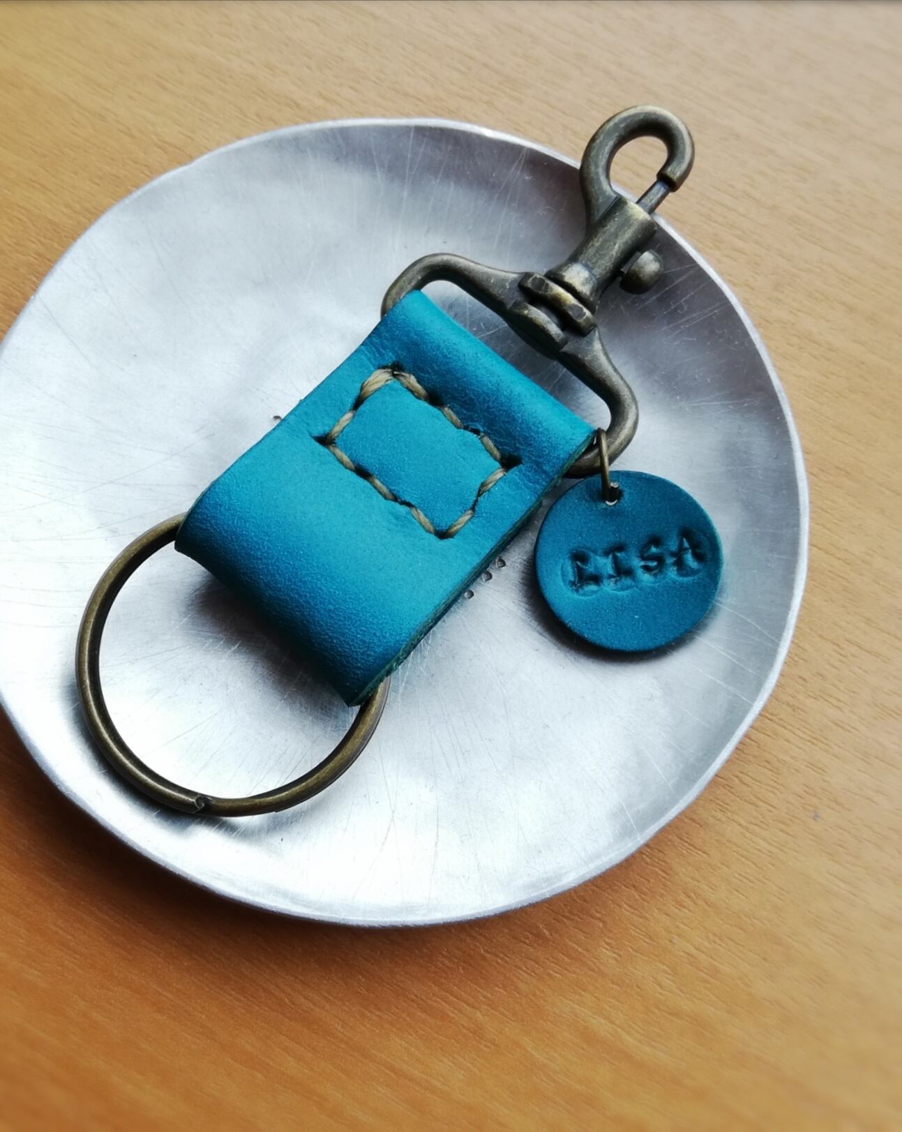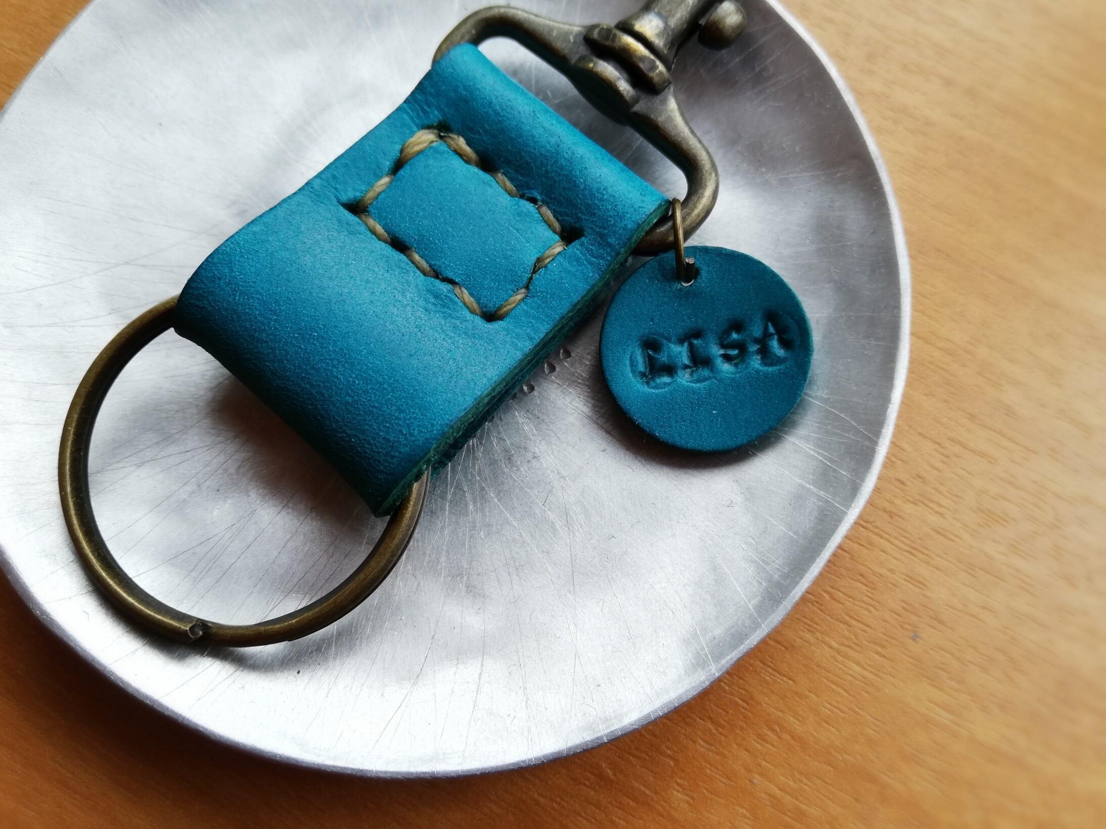 【オーダー品】キーホルダー セルリアンブルー オイルヌメ