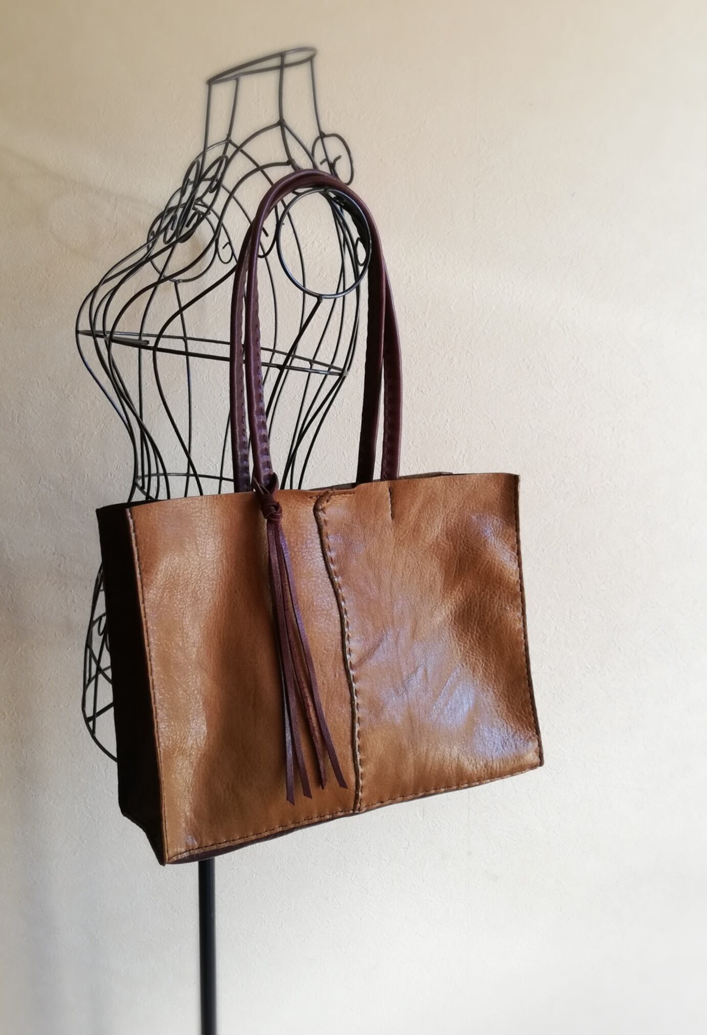 自立し、荷物の整理がしやすい四角いトートです