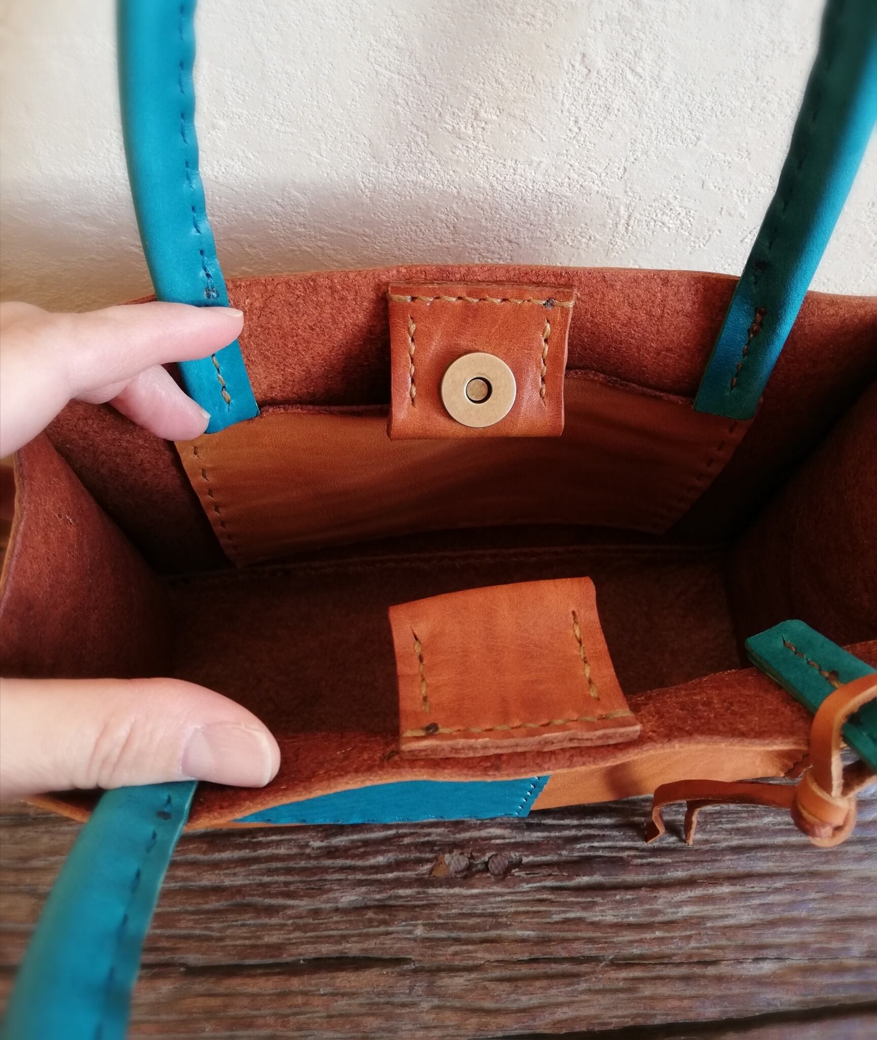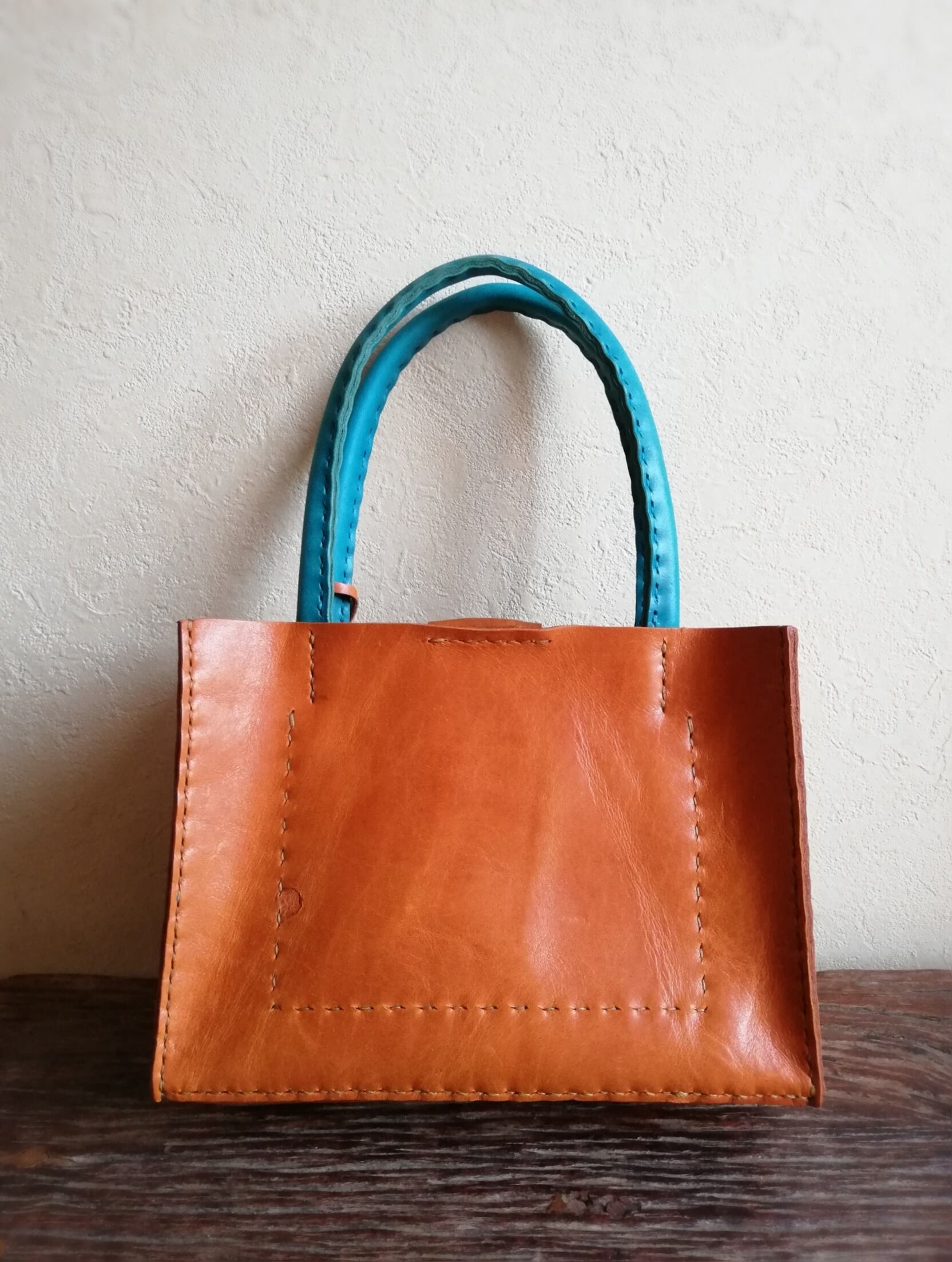 【オーダー品】大人の虫かごトート オレンジブラウン✗セルリアンブルー オイルワックスレザー