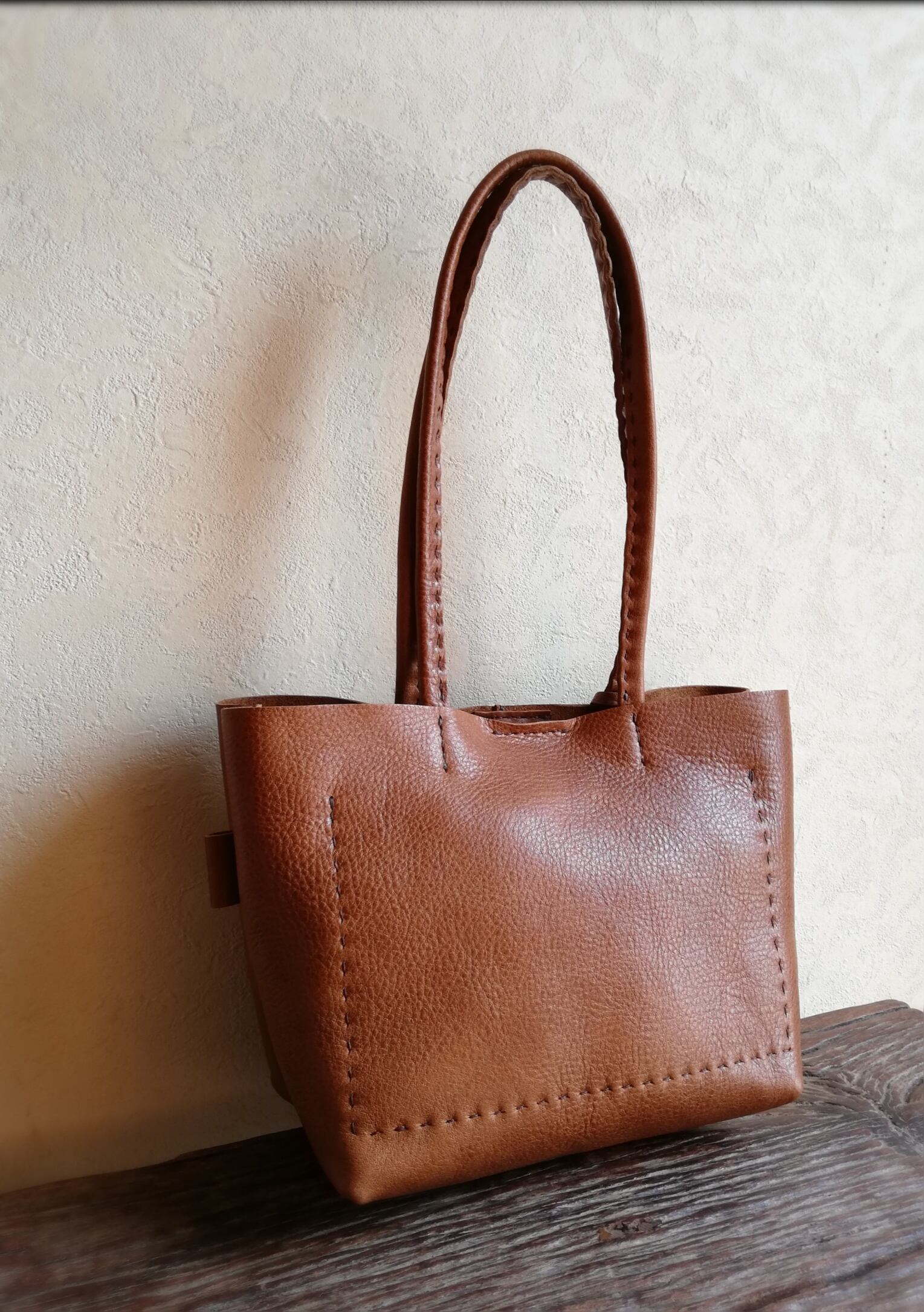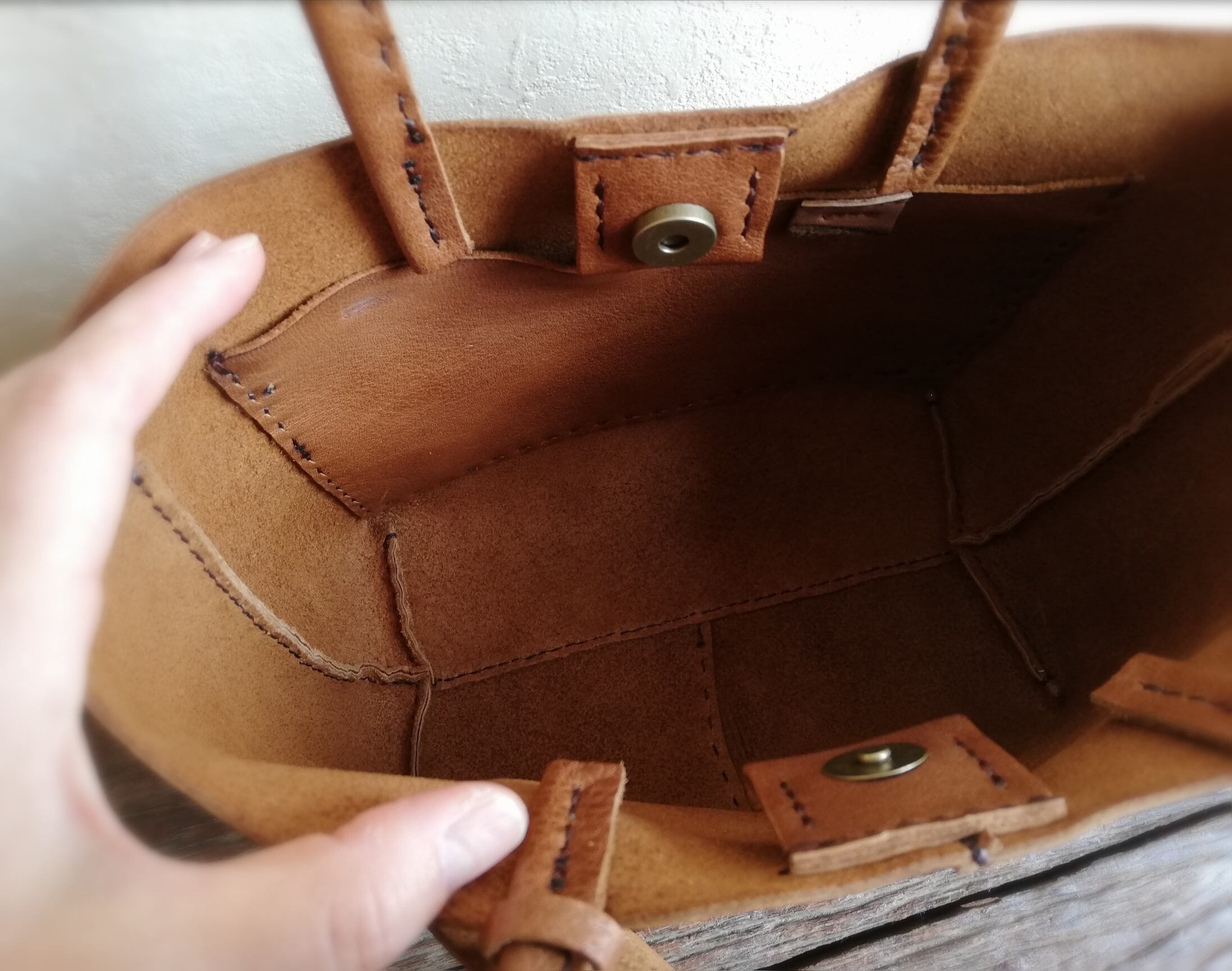 物の出し入れがスムーズになるよう少し横長サイズに、また、肩がけが容易にできるよう持ち手も長くしました