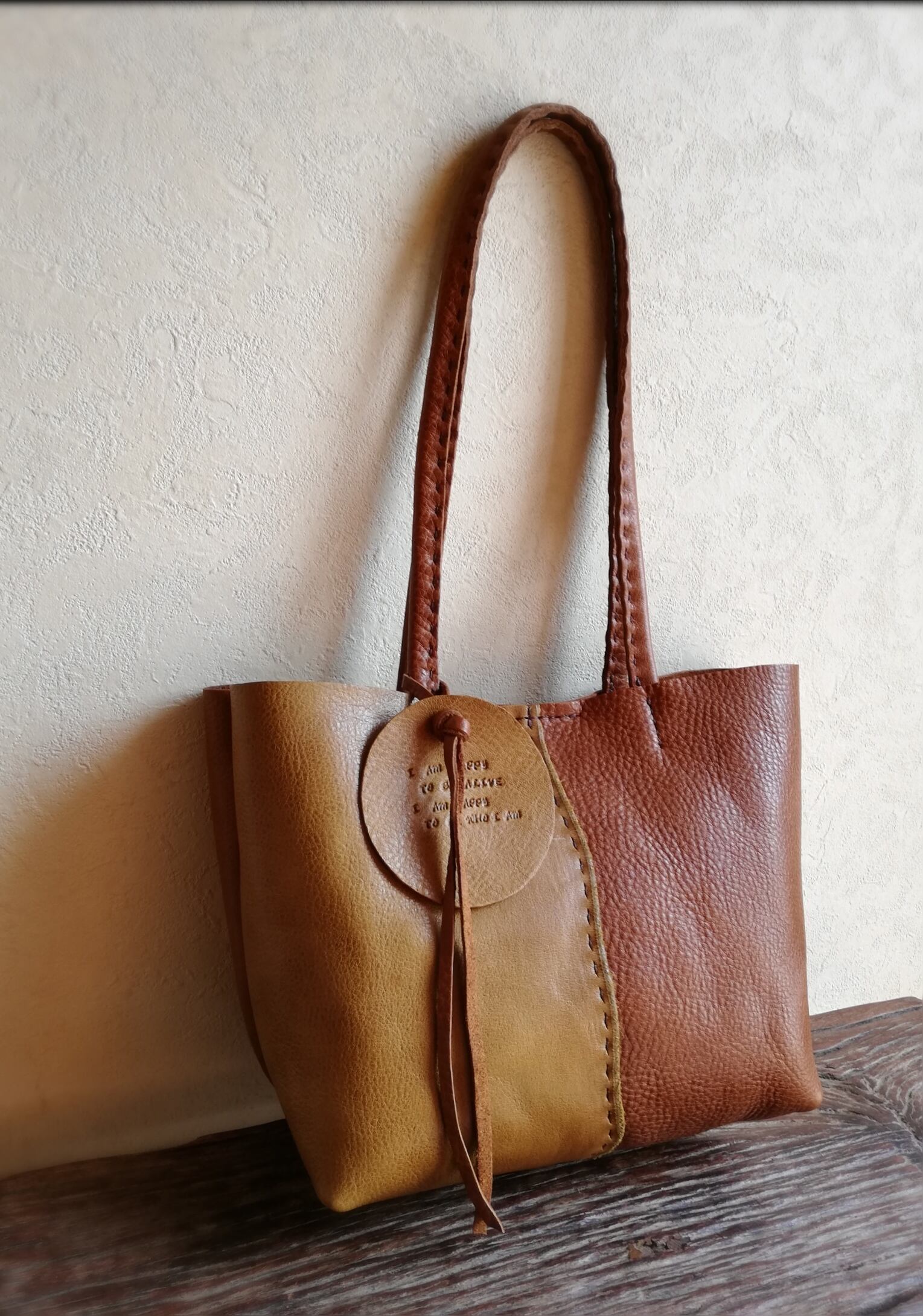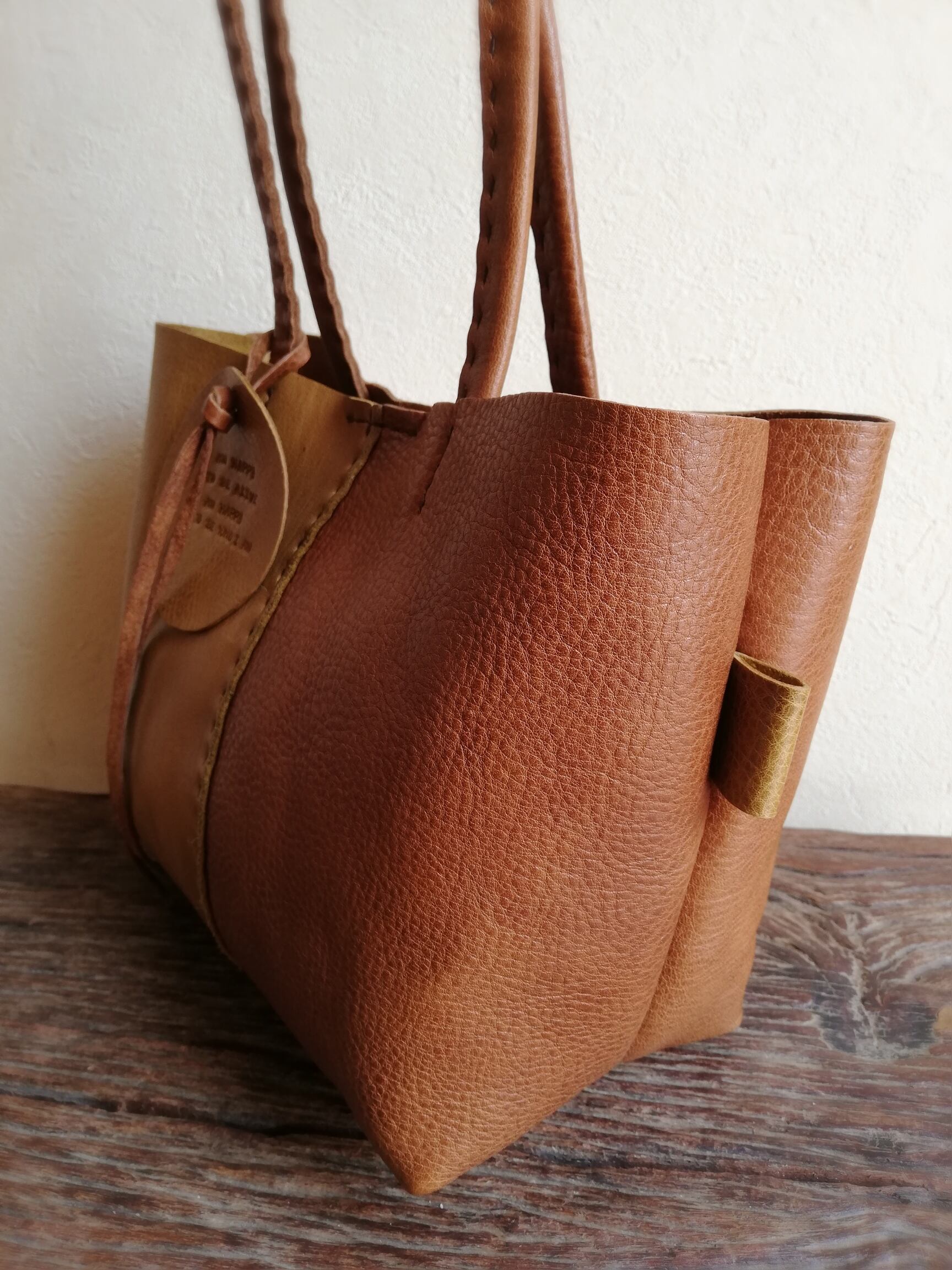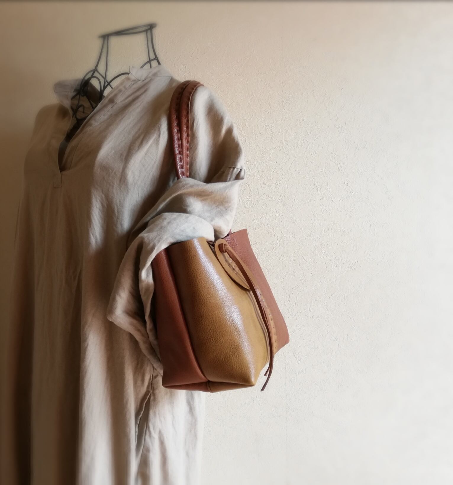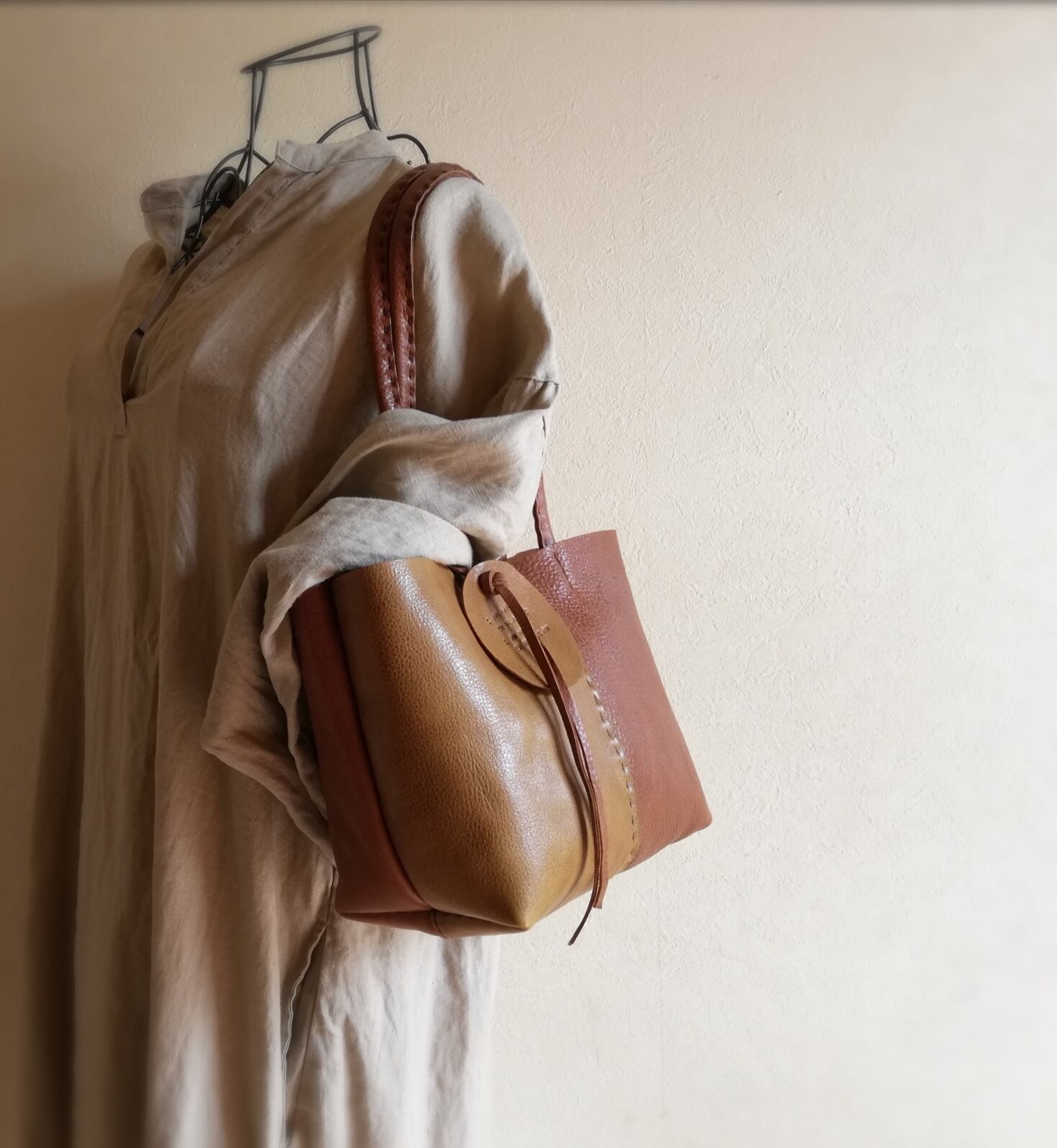 まいにちtote ブラウン✗マスタードイエロー オイルシュリンクレザー