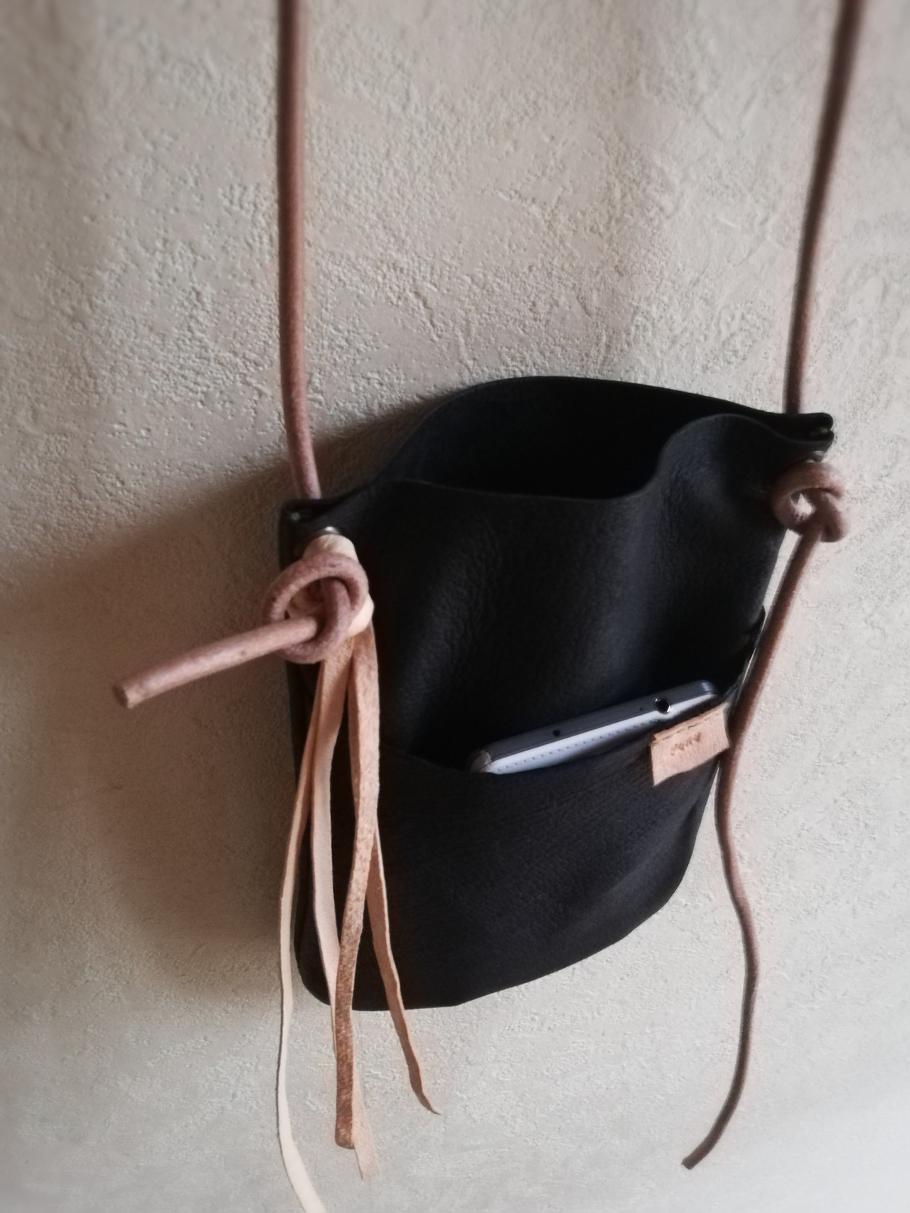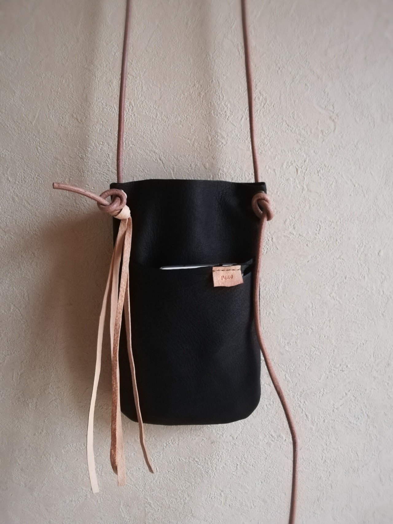 ポシェット 黒色✗生成り ピッグスキンレザー