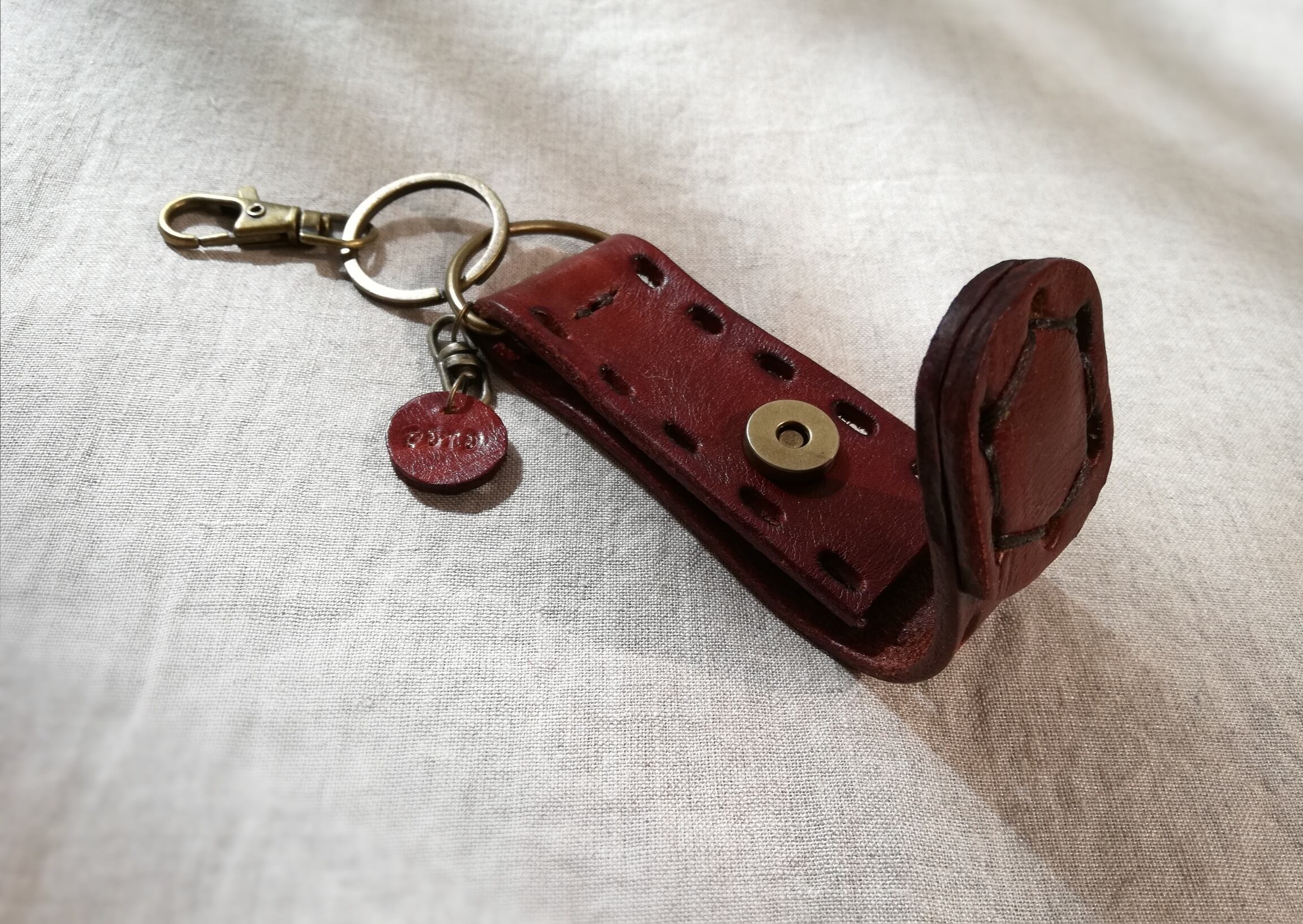 牛革ベルトをリメイクしてキーホルダーを作りました