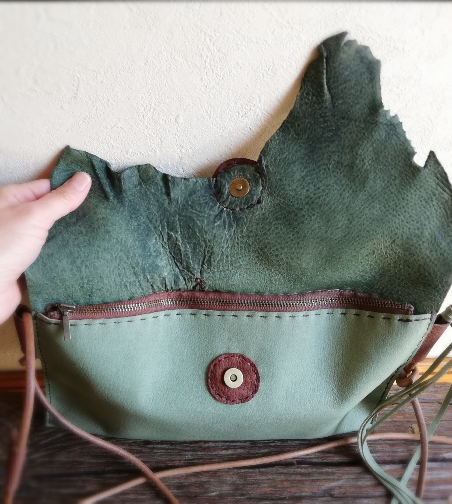 かぶせの蓋は革の端っこを使いました