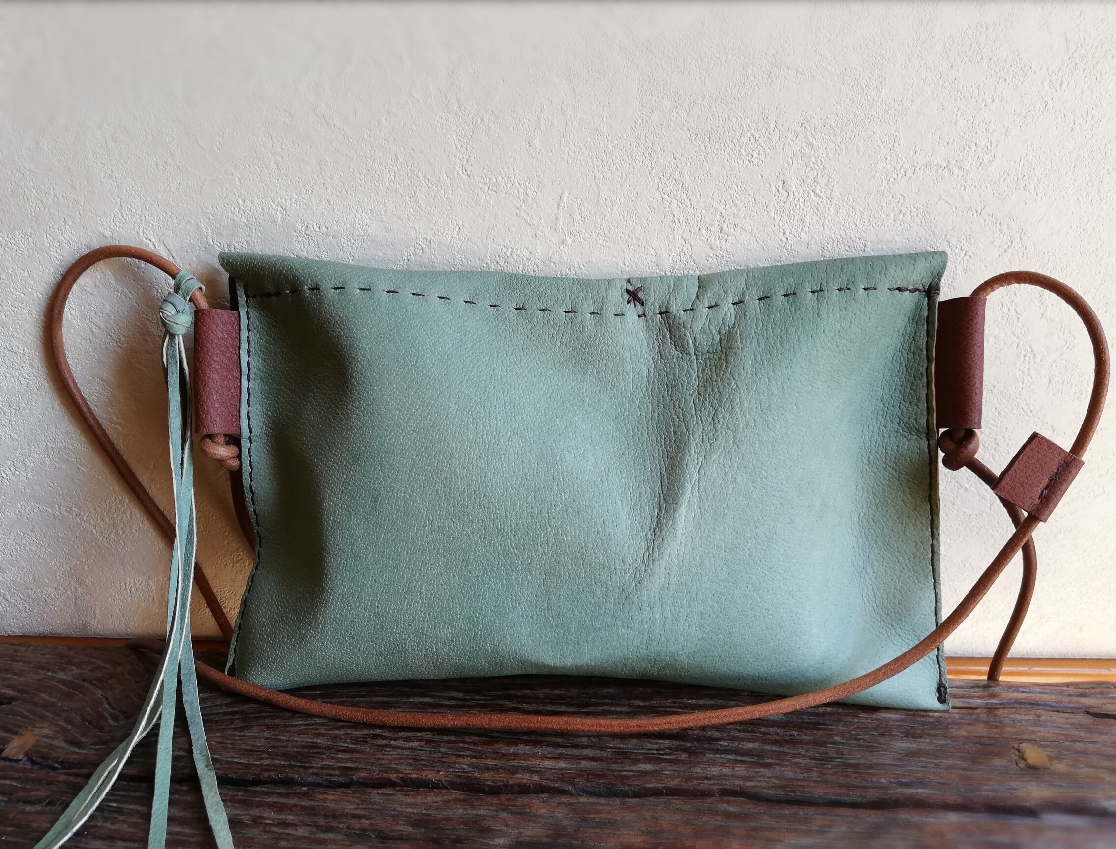 ぺたんこショルダー グラスグリーン✗チョコレート ピッグスキンレザー