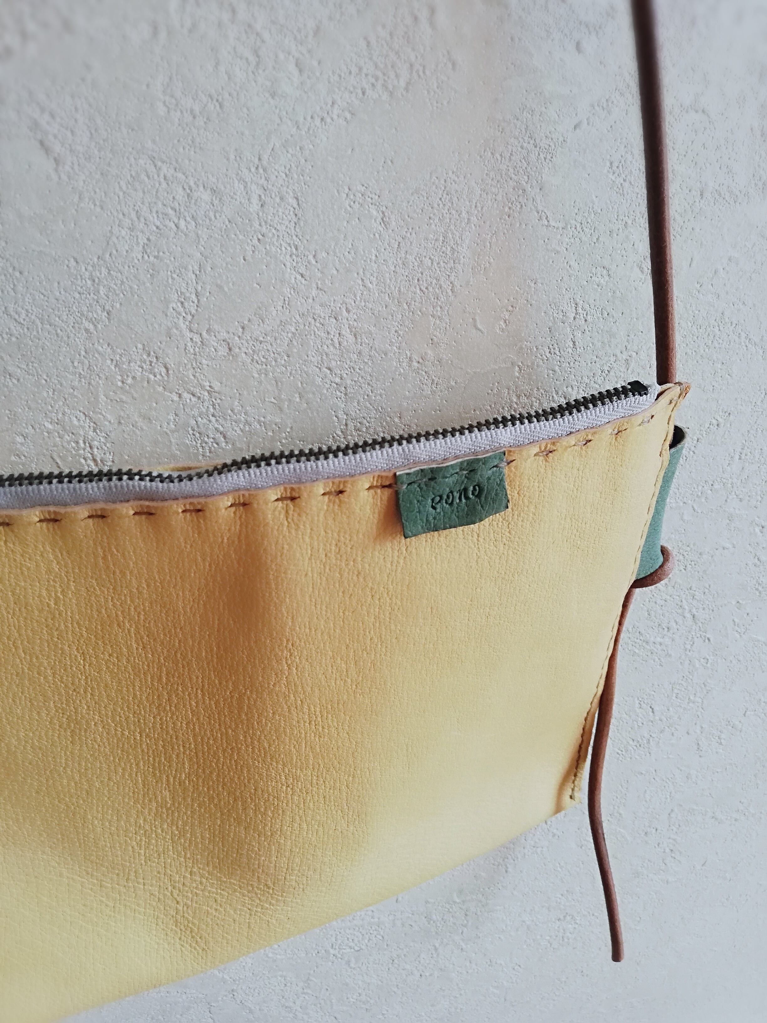 ぺたんこショルダー ミモザ✗グラスグリーン ピッグスキンレザー