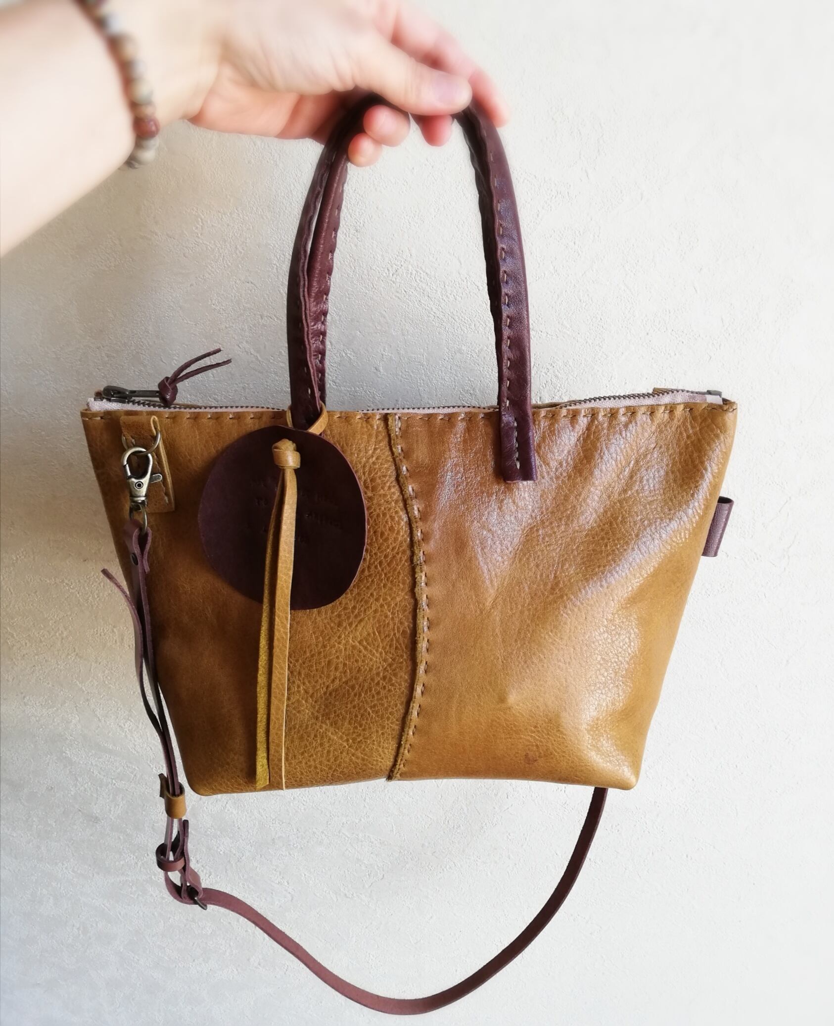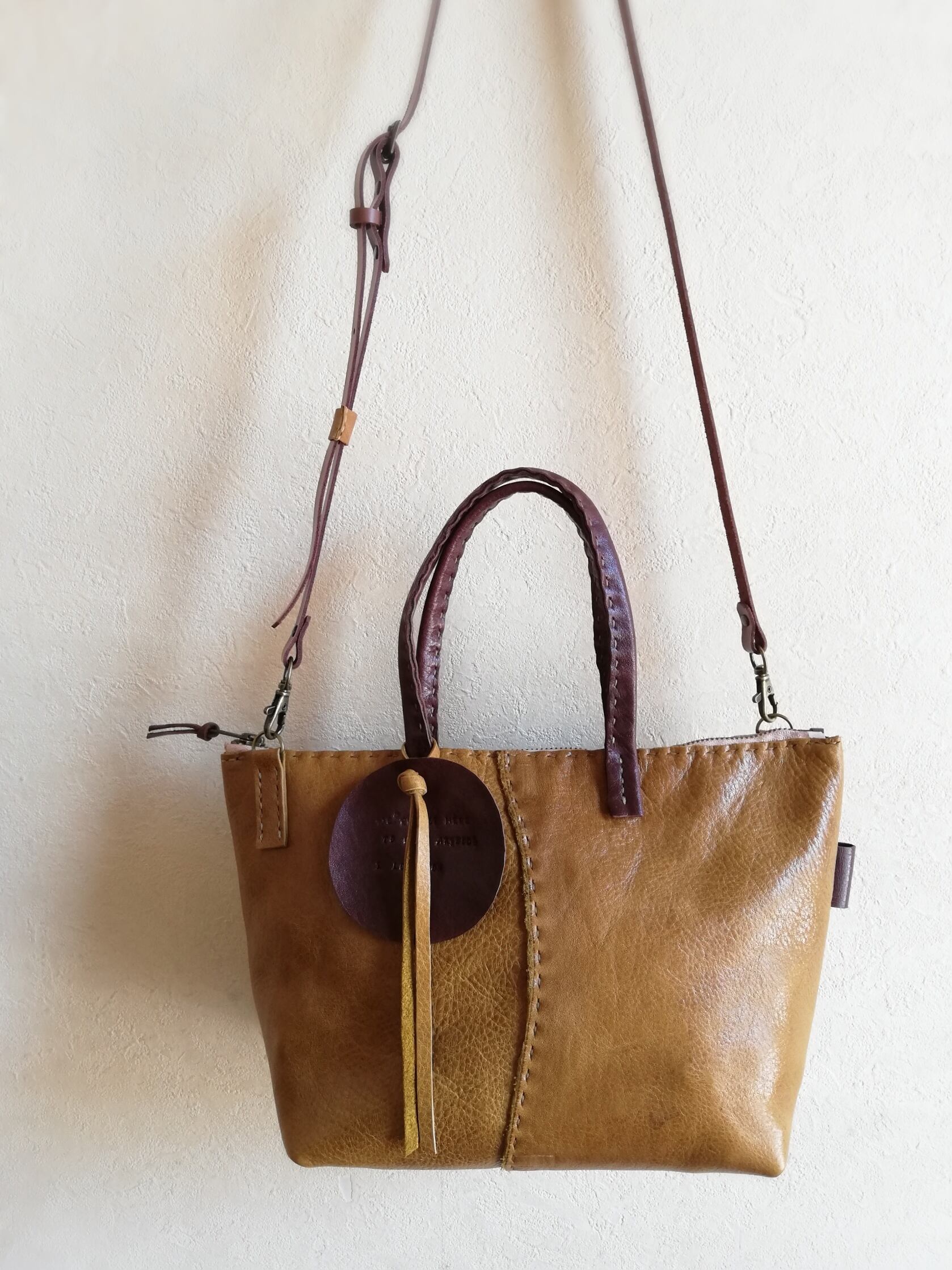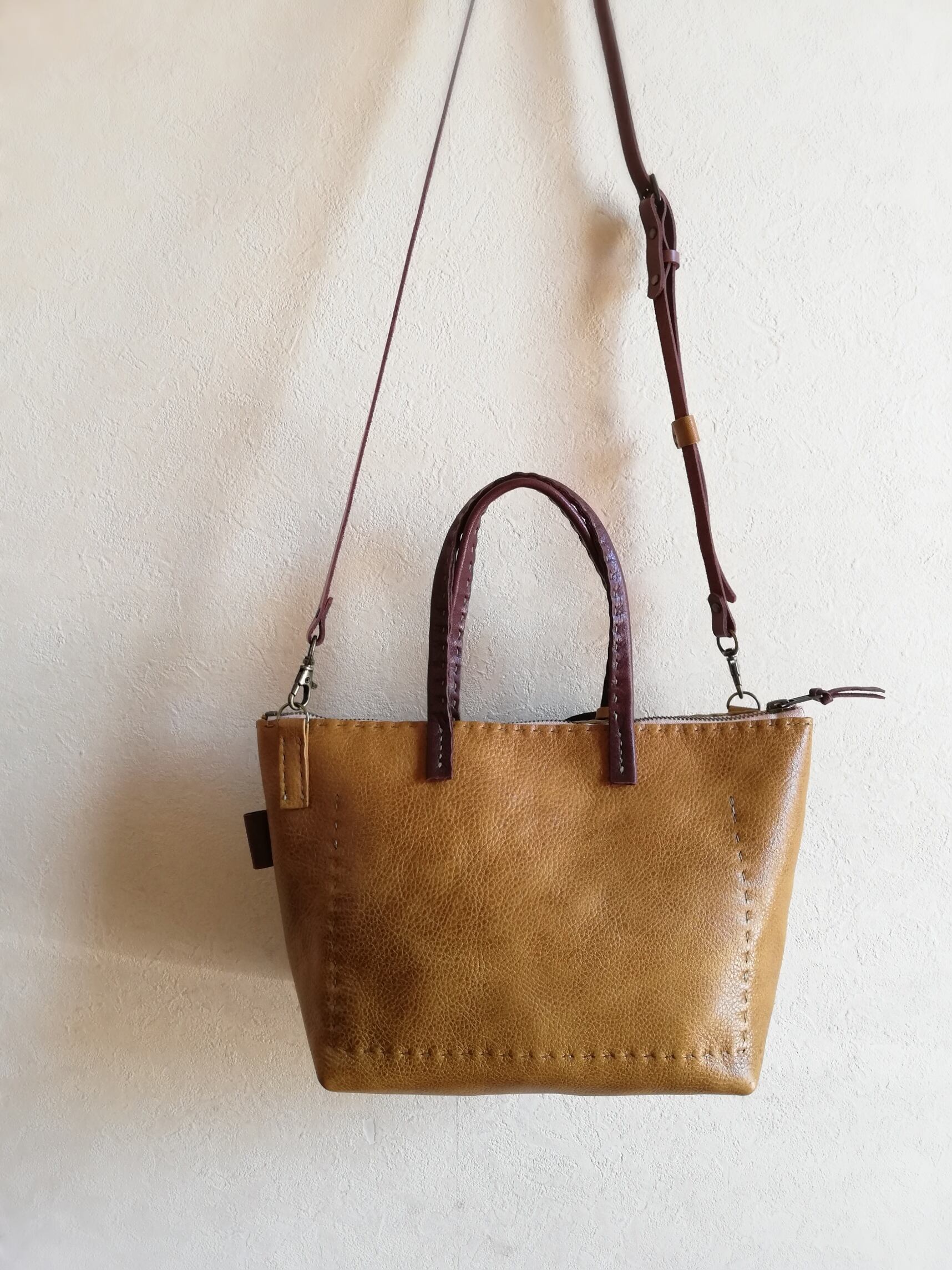 まいにちtote shoulder マスタードイエロー✗ダークブラウン オイルシュリンクレザー