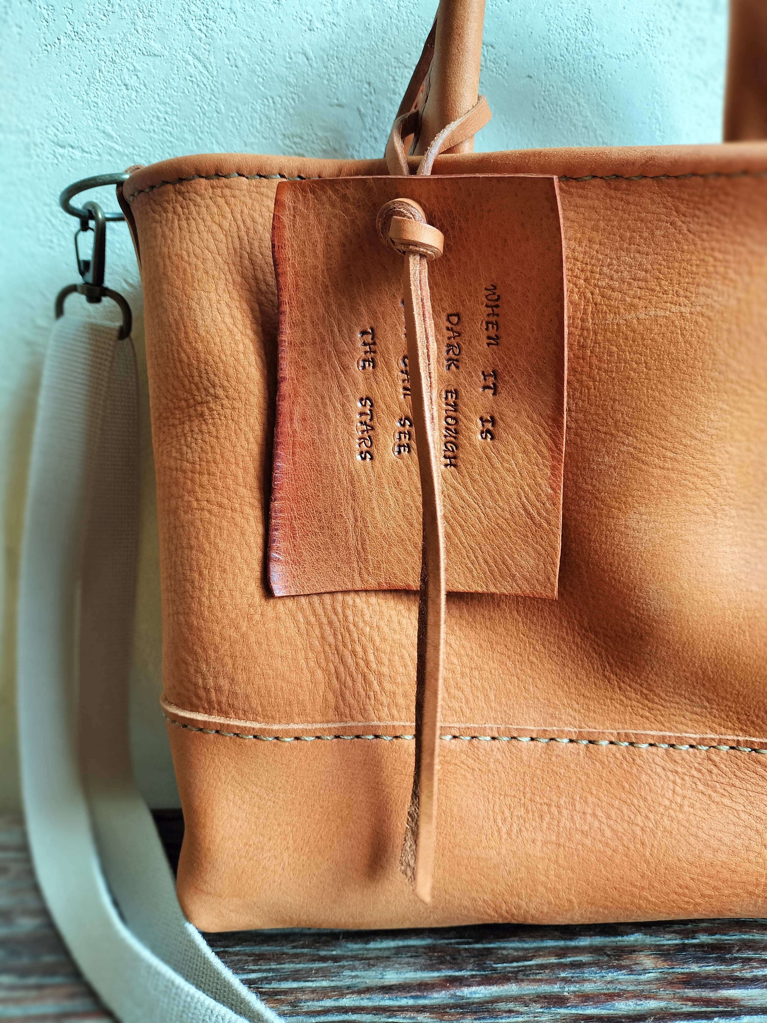 革タグチャームには、米国の思想家、哲学者、作家、詩人 エマーソンの名言