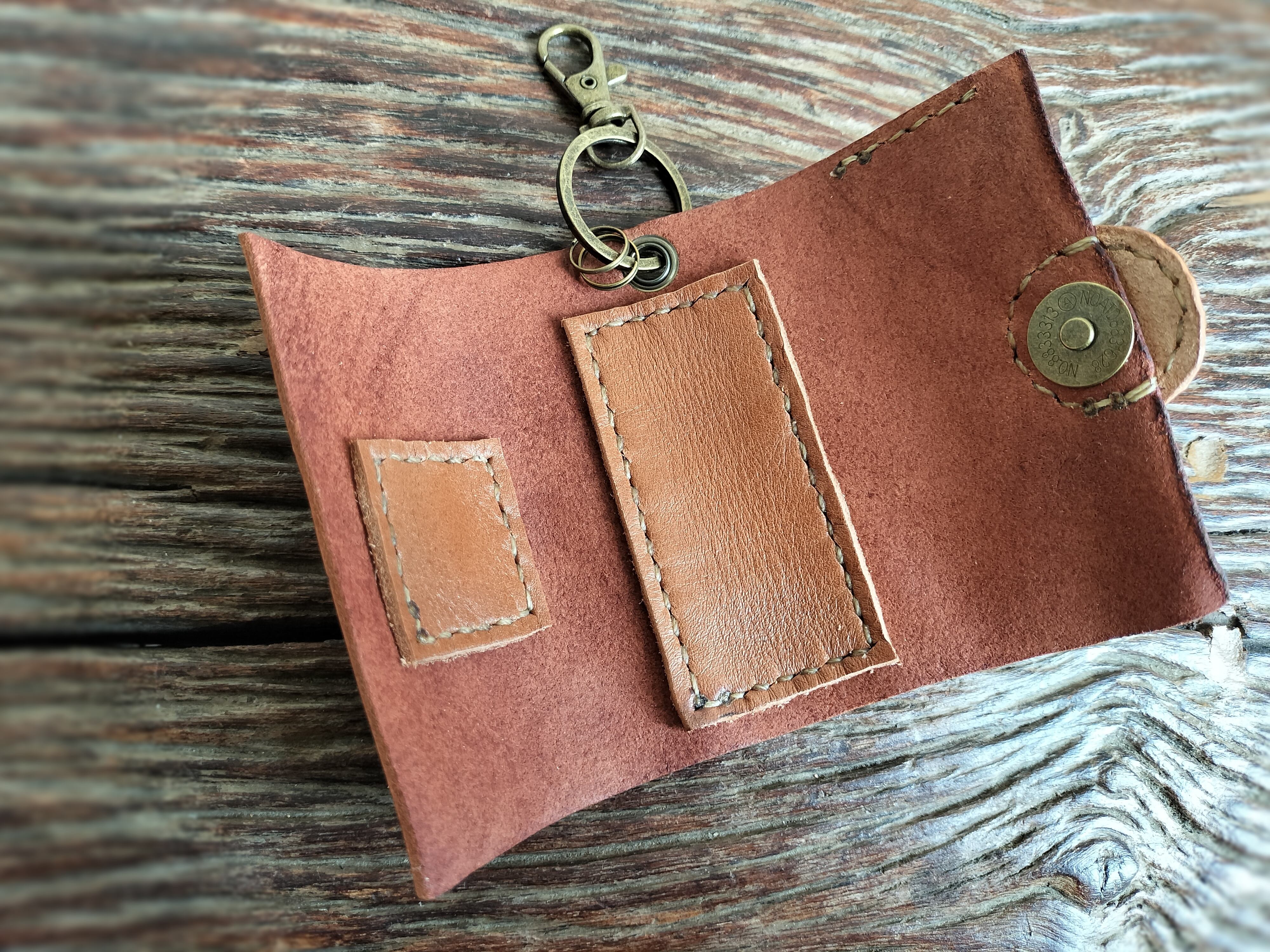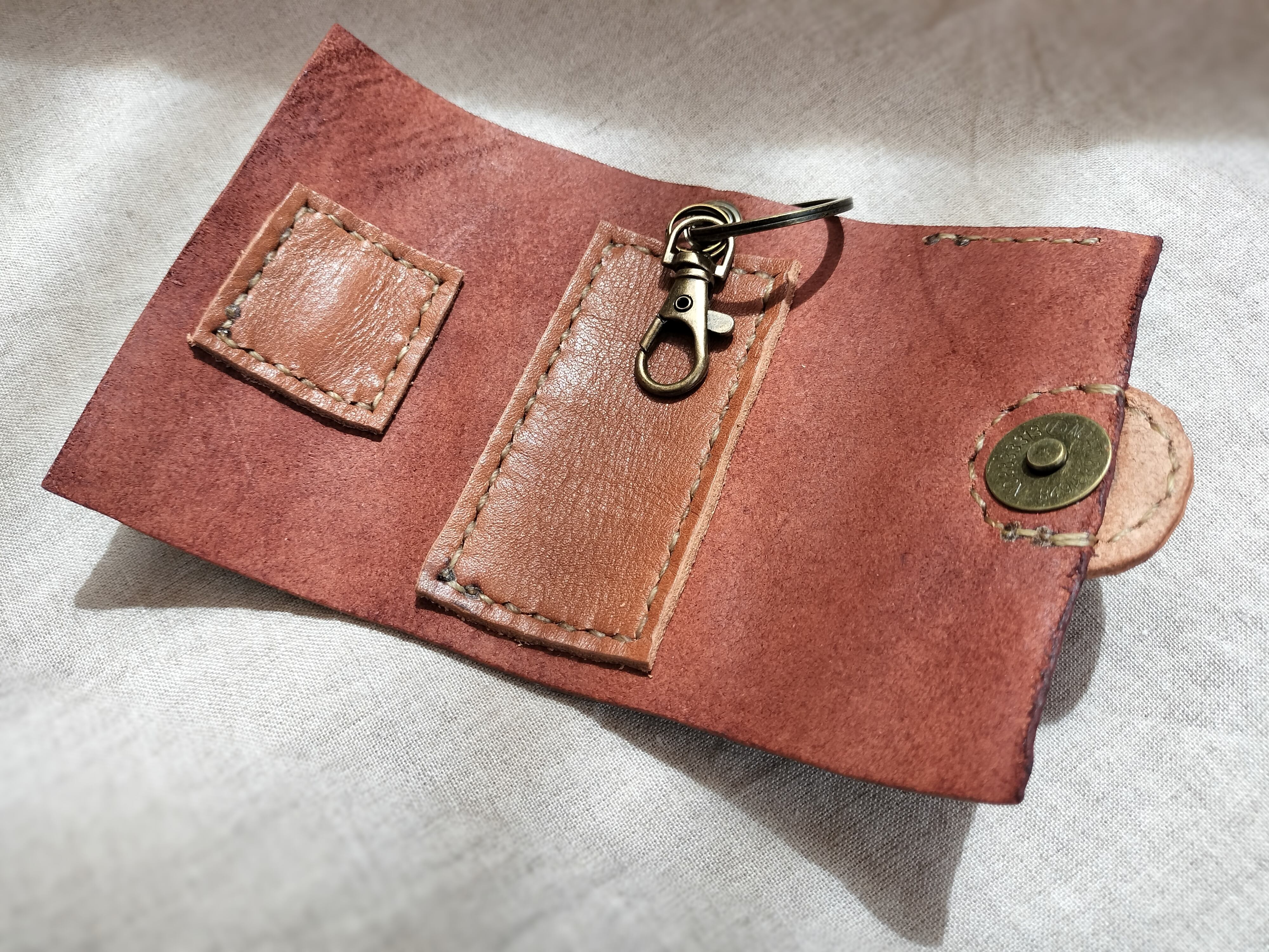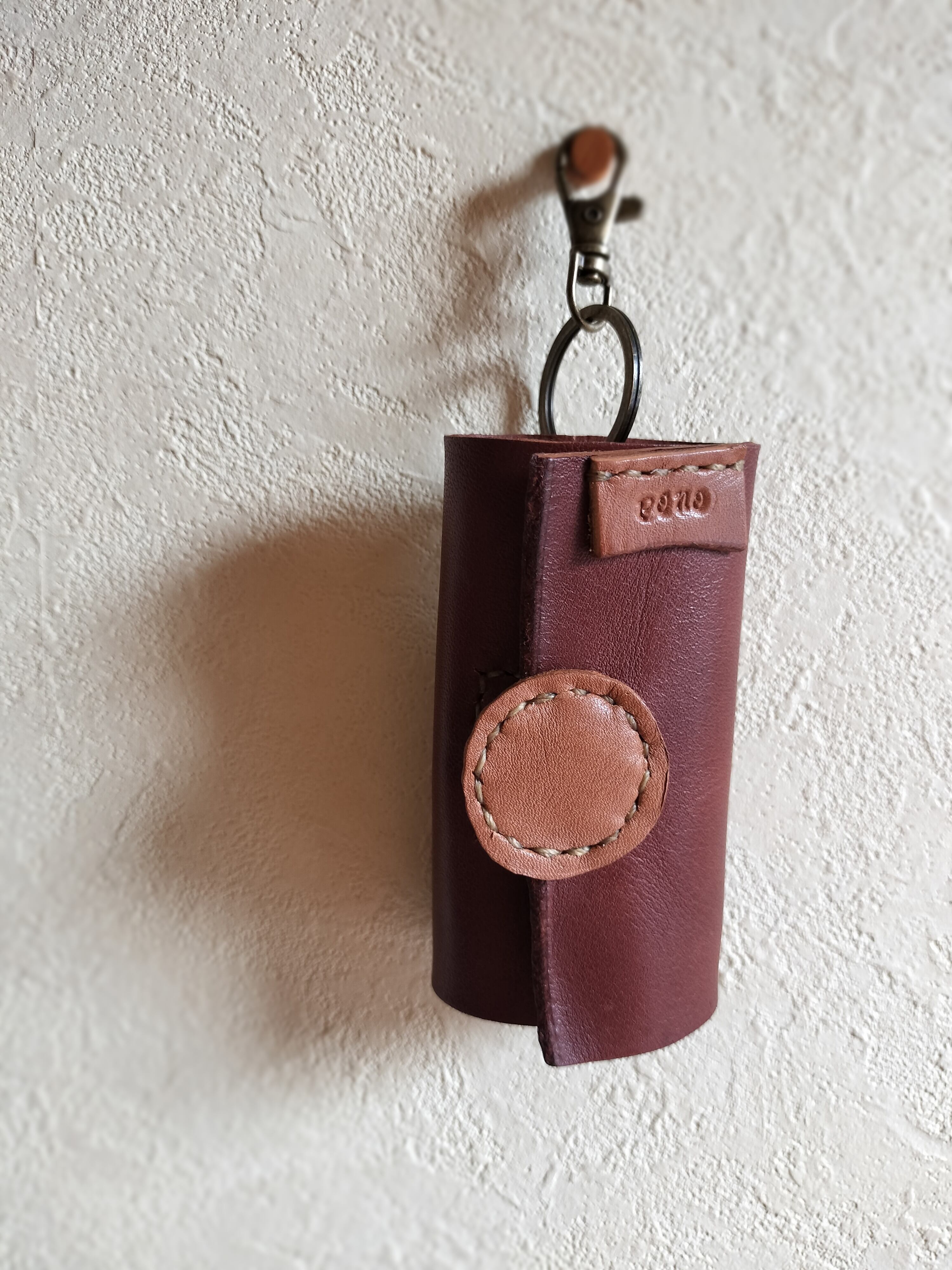 【展示品】コロンとしたキーケース 濃いブラウン✗濃いヌメ色 オイルワックスレザー