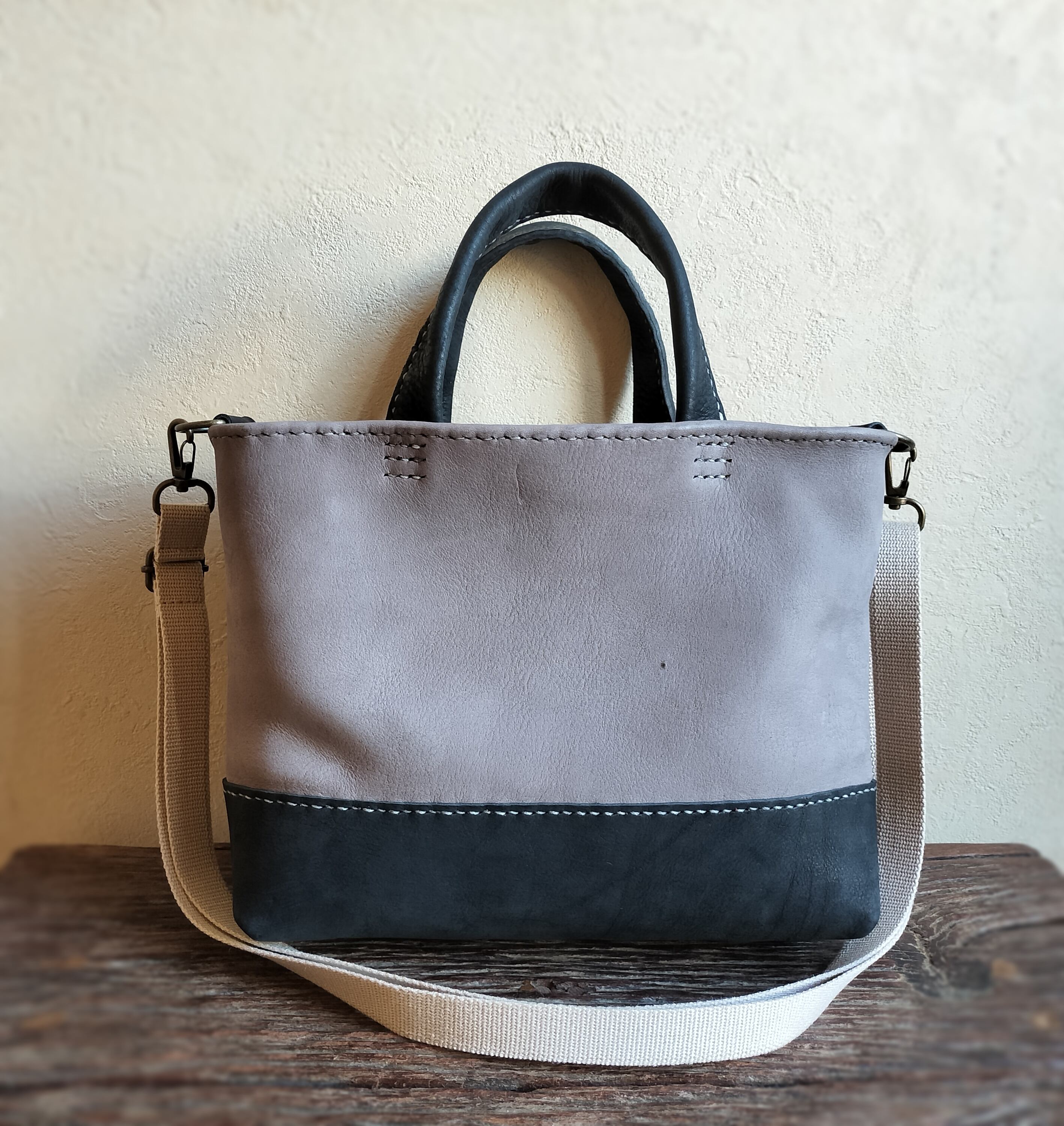 【オーダー品】まいにちtote shoulder グレー✗黒 オイルヌメ(シュリンク)