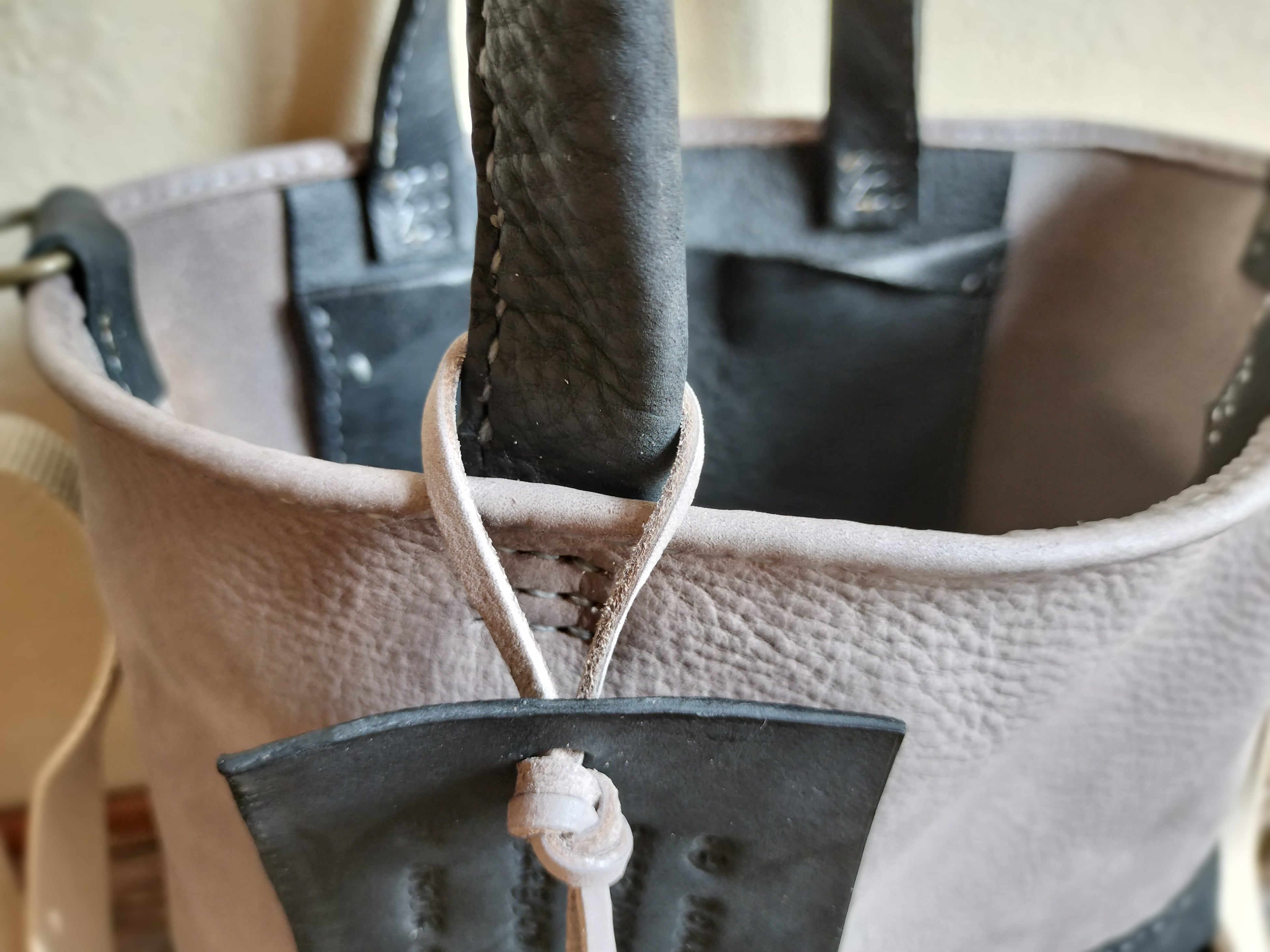 【オーダー品】まいにちtote shoulder グレー✗黒 オイルヌメ(シュリンク)