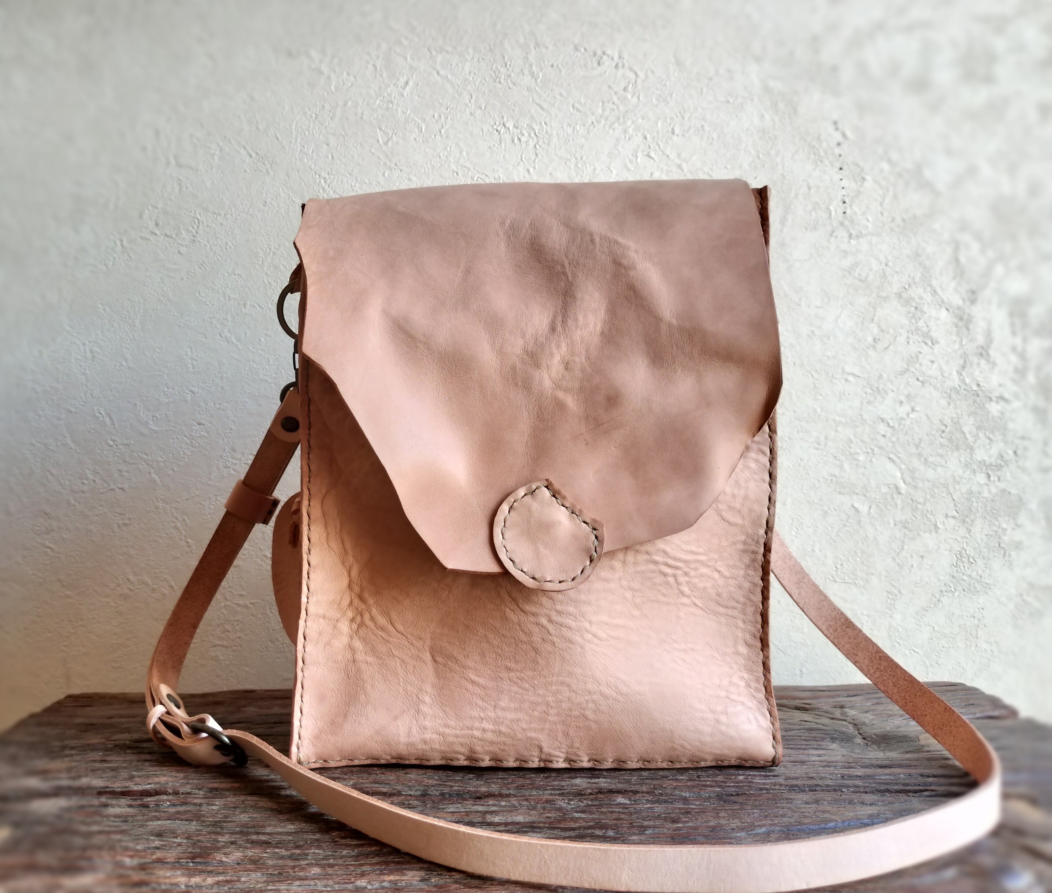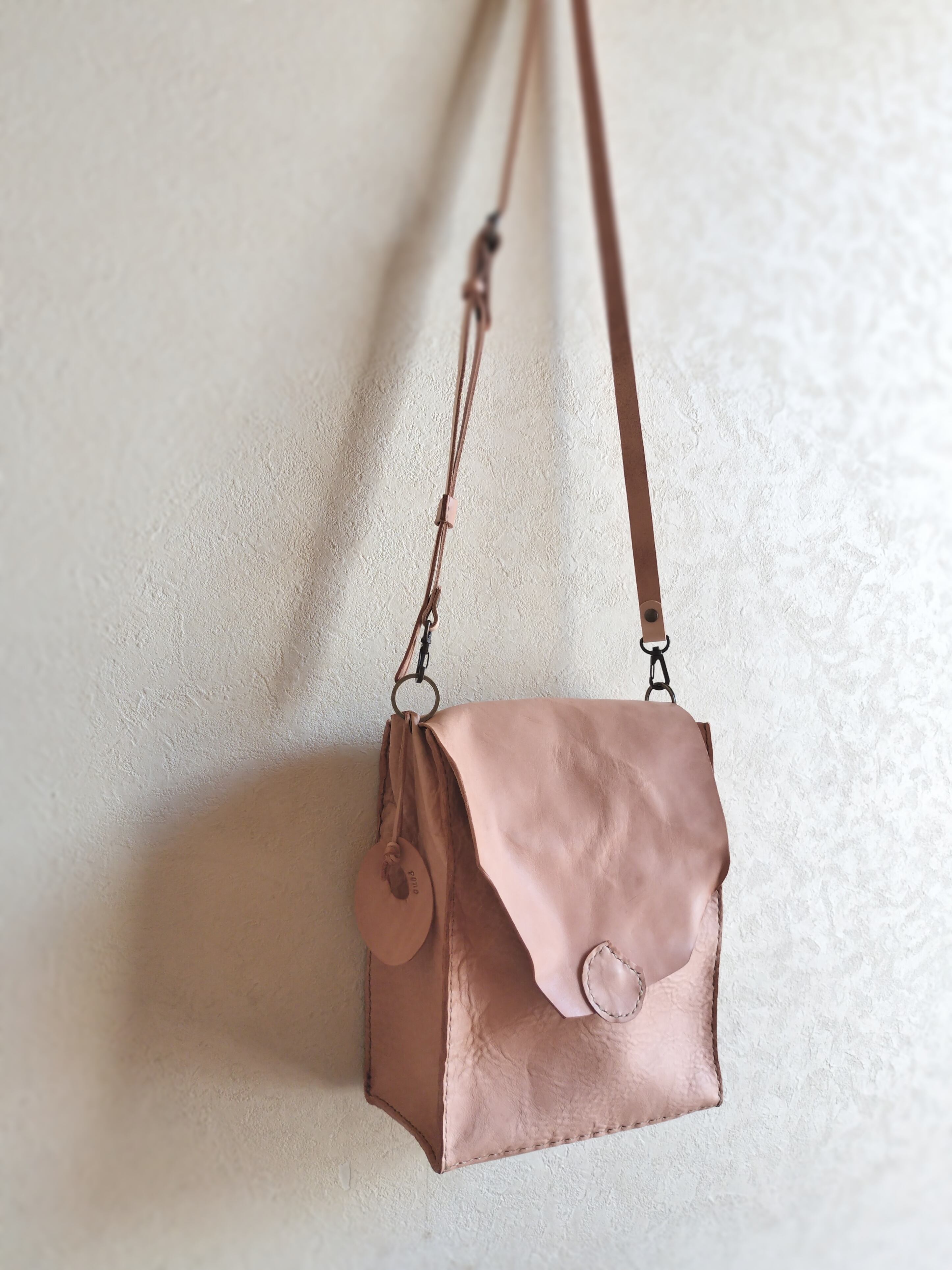 四角いショルダーバッグ ナチュラル オイルヌメ(シュリンク)
