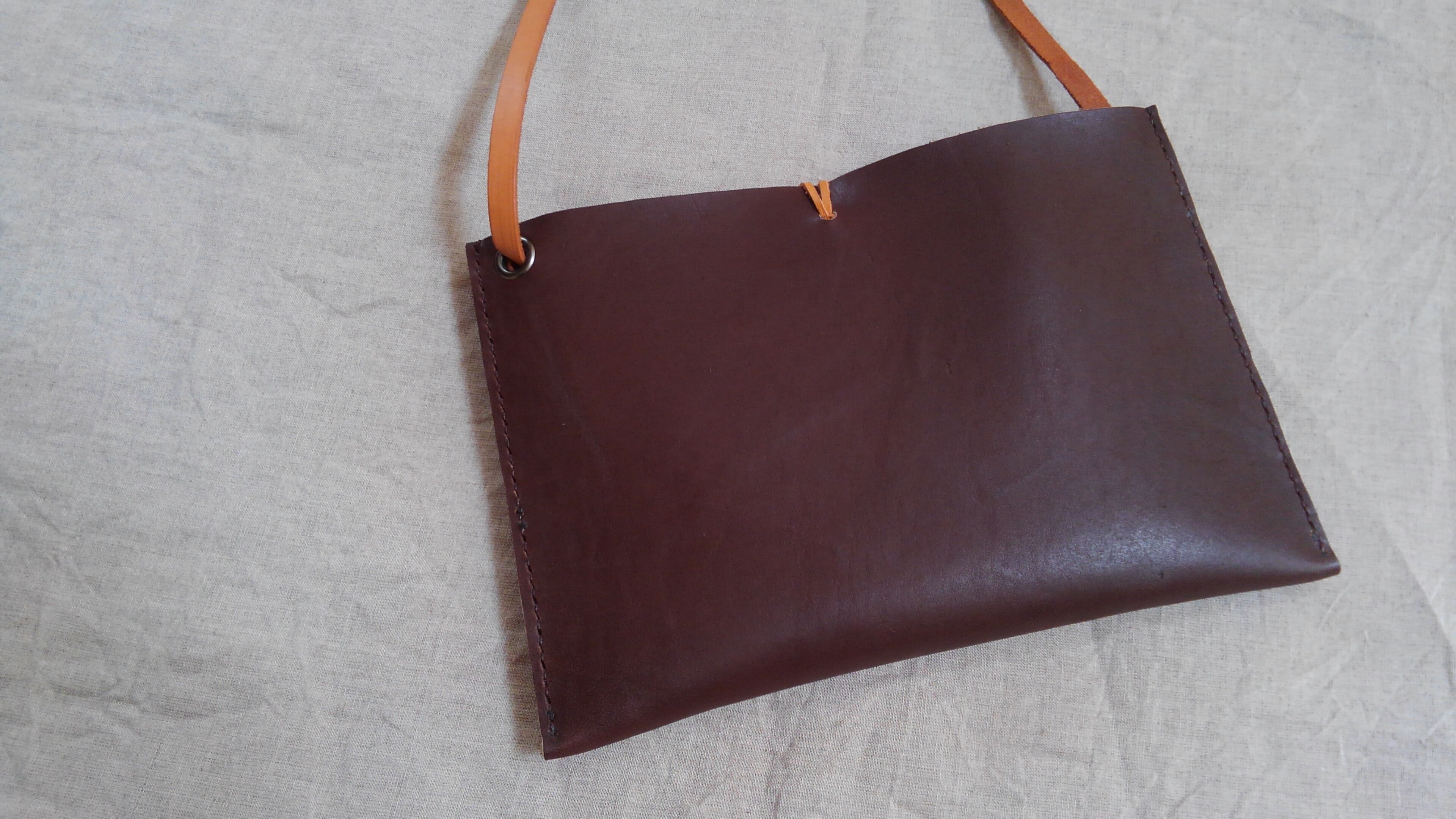 ※革紐の長さは、現在158㎝の身長に合わせて結んでいますが、約30㎝長めにとっています。ハサミで調節可能です。